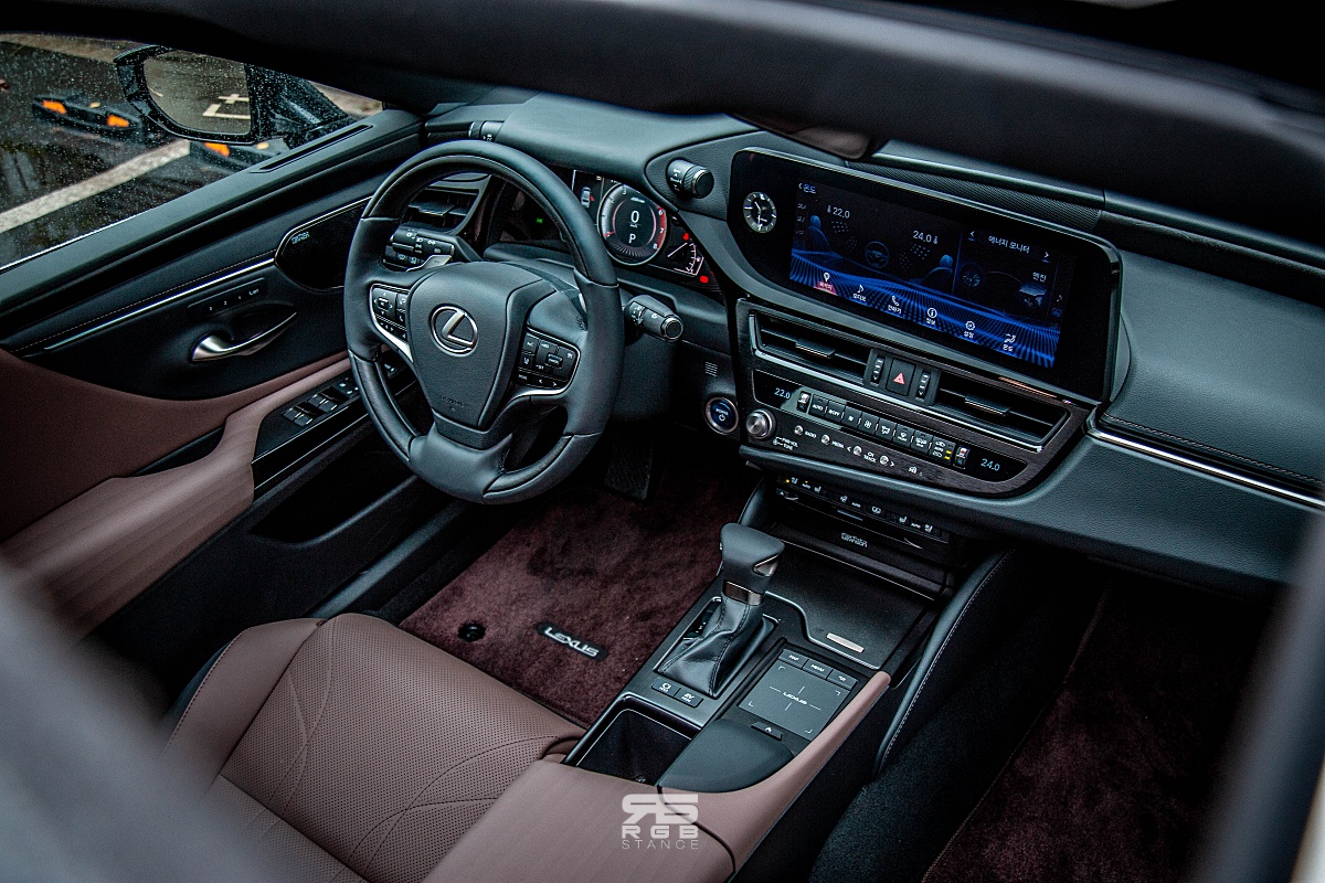 뉴 ES300h 의 실내는 크게 변한건 없지만, 프리미엄 소재를 사용해 꼼꼼히 마감했다. 우선, 운전석은 운전에 집중할 수 있도록 인체공학적인 디자인으로 구성되어 있고, 12.3인치의 디스플레이는 내비게이션을 비롯한 다양한 인포테인먼트를 제공하고 있으며, 엠비언트 라이트는 실내 분위기를 고급스럽게 연출해준다. 하지만, 조금 다양한 컬러와 밝았으면 싶은 생각이 든다.