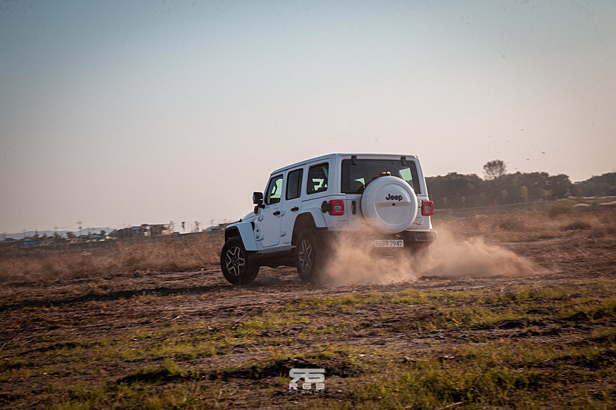 사륜구동 시스템은 지프의 매력을 느끼기에 충분하다. 일부러 진흙탕길에 차를 빠뜨려보고 거친 길을 다녀봤는데, 쉽게 험로를 빠져나오는 능력은 정말 박수칠 만하다. 정말 아무렇지 않게 꾸준한 토크로 거칠고 미끄러운 진흙탕길을 빠져나오는 것 자체가 상당히 큰 매력포인트이다.