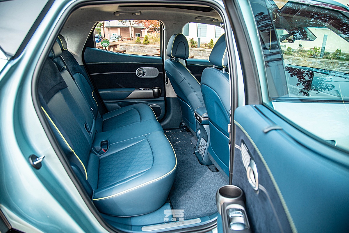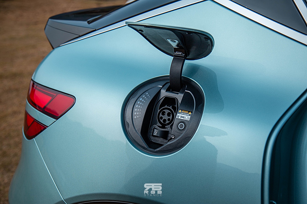 본넷과 휀더 부분을 하나의 패널로 구성한 클램쉘(Clamshell) 깔끔한 이미지를 더해주고 있으며, C 필러 쪽의 크롬 라인이 EV 이미지를 형상화하고 있으며, 오토플러시 도어손잡이와 디지털 사이드미러(옵션) 첨단의 이미지를 보여주고 있다. 리어의 콤비램프 역시 두줄로 되어 있지만, 두꺼운 이미지로 조금 스포티한 느낌을 강조해준다. 리어 스포일러는 역동적인 모습을 연출해주지만, 실내에서 리어뷰미러를 , 은근 거슬리는 구석이다.