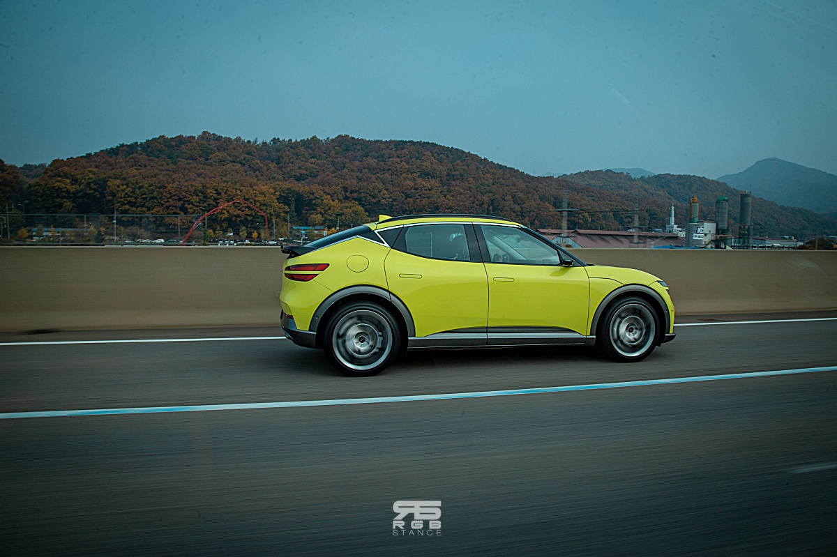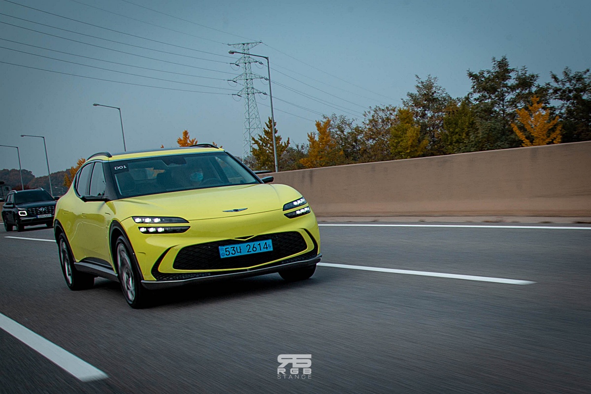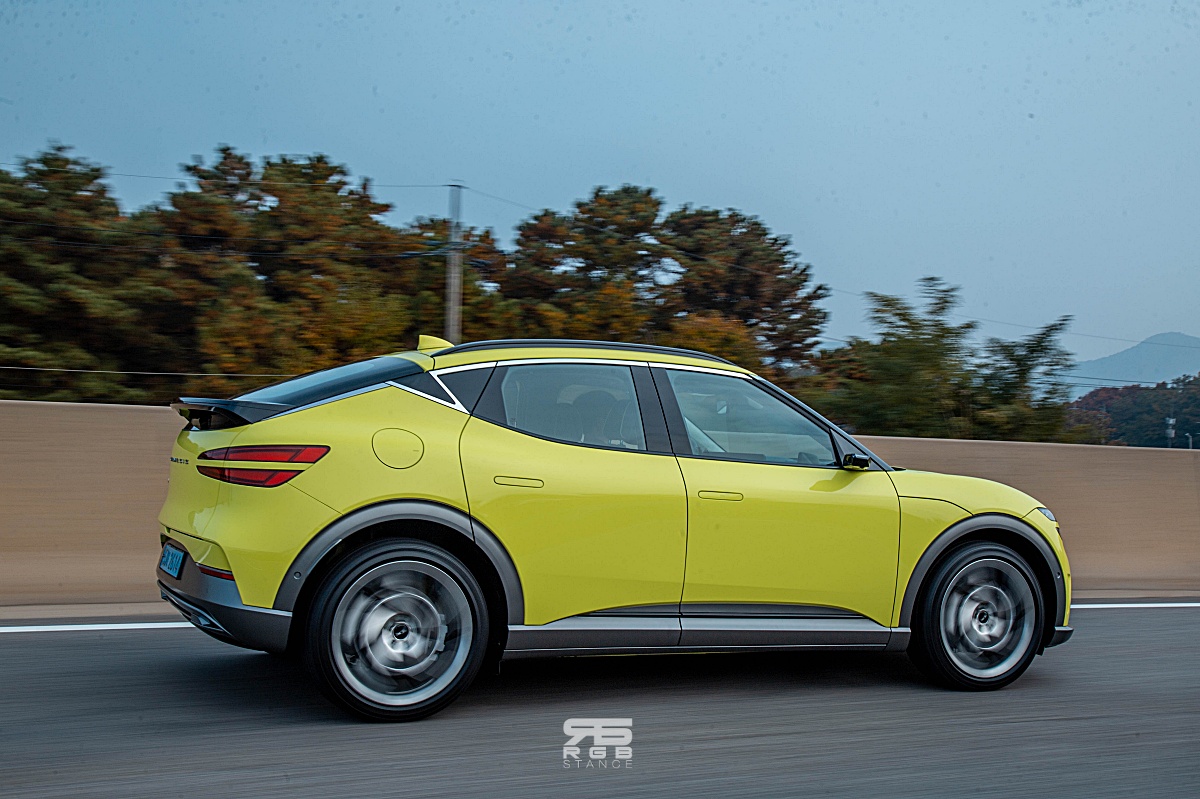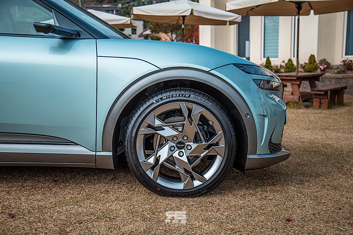 승차감은 확실히 G80e 달리, 전기차 전용 E-GMP 플랫폼을 사용한 때문인지 고속주행에서 더욱 안정적인 모습이며, 코너링도 확실히 좋다. 사륜구동으로 움직이는 만큼 좋긴 한데, 고속 코너링시 살짝 언더스티어 성향을 느낄 있다. 그럼에도 불구하고, 전자식 차동제한장치(e-LSD) 주행환경에 맞춰 좌우 구동력을 배분해주어 전체적으로 상당히 밸런스 좋은 핸들링 감각을 보여주고 있으며, 요철을 넘어갈 때에도 아이오닉5 비교해 더욱 부드러운 느낌을 전해주고 있다. 프리뷰 전자제어 서스펜션은 전방 카메라로 노면 정보와 내비게이션을 바탕으로 서스펜션의 감쇠력을 조절해주어 부드럽도 편안한 승차감을 보여준다. 달리기 성능은 SUV 특유의 높은 무게중심으로 움직임이 크긴 해도, 운전이 편하면서도 적당히 폭력적인 가속력으로 답답함이 없어서 좋다.