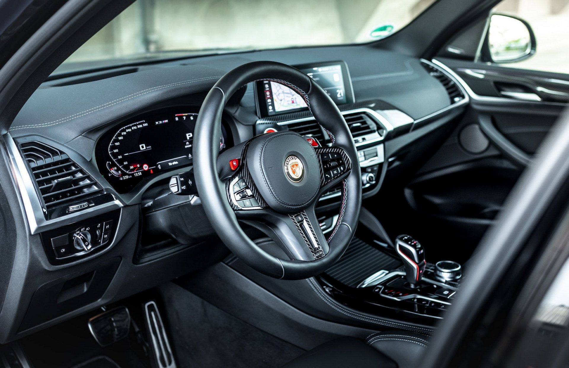 실내에도 카본파이버가 많이 사용되었으며, 22인치 알피나(Alpina) 휠을 사용하고 있고, 프론트에는 255/35/R22 , 리어에는 295/30/R22 사이즈의 고성능 타이어를 사용하고 있고, 서스펜션은 30mm 낮춘 H&R 다운스프링을 사용하고 있다.