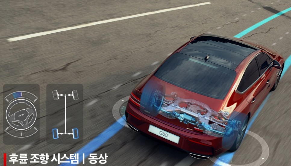 특히, 후륜조향시스템은 차량 주행속도와 스티어링휠의 조향각에 따라 후륜 조향각을 바꿔주는데, 일반적인 원선회를 할 경우보다도 더 짧은 반경으로 회전이 가능했는데, 저속(60km/h 미만)에서는 후륜이 앞바퀴와 반대 방향으로 움직여 회전반경을 최소화하고, 고속 주행에서는 앞바퀴의 방향으로 움직여 언더스티어를 방지해준다.
