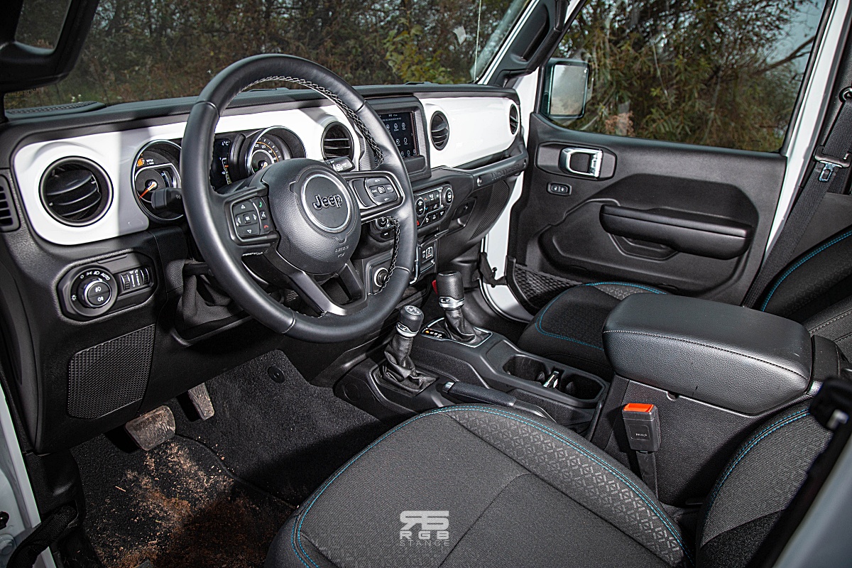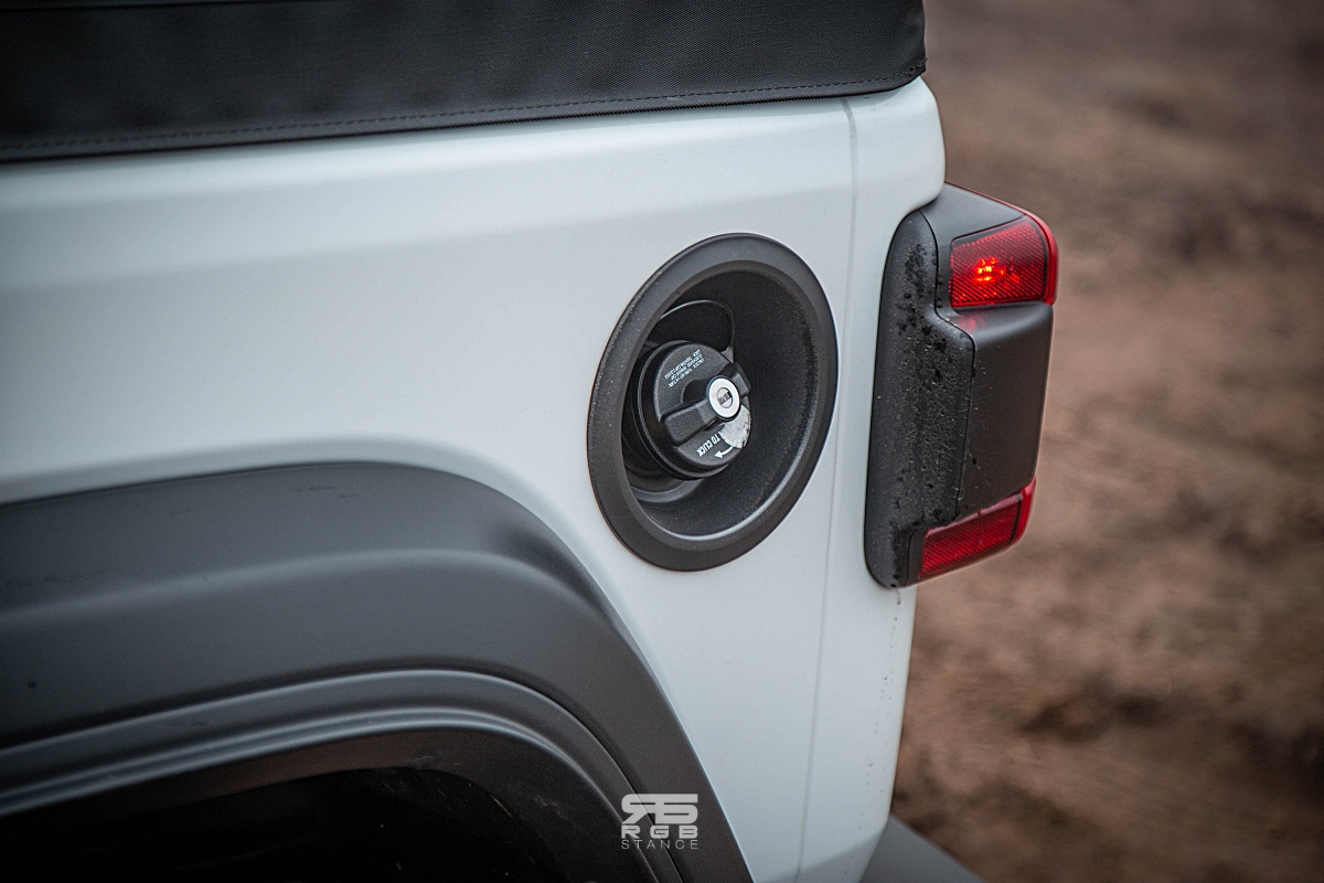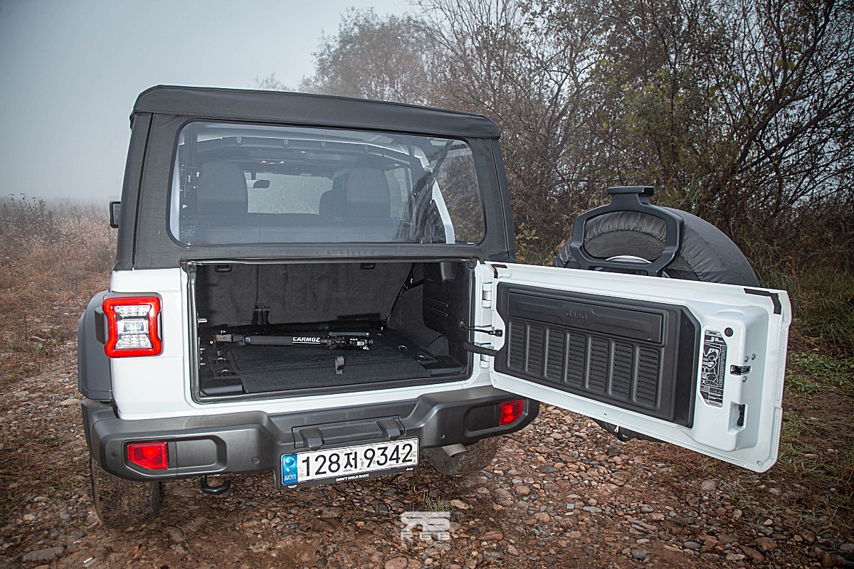 전체적인 모습은 다른 랭글러와 큰 차이를 알기 어렵다. 주유구는 키로 돌려서 열어야 하고, 수동 소프트탑이 사용되고 있는데, 전동식이 아니어서 조금 불편하다. 익숙해지면 금방 접고 닫고 할 수 있겠지만, 아무래도 귀찮다. 잠금장치를 풀고 탑을 다 젖혀야 하다보니, 전동식과는 다른 뛰어난 개방감을 준다고는 하더라도, 귀찮기는 하다. 그리고, 소프트탑의 특성상 새똥이나 비 등을 고려하면, 관리가 정말 쉽지 않다. 그리고 사이드스텝은 옵션으로 달아야 한다. 없으니 좀 불편하긴 하다.