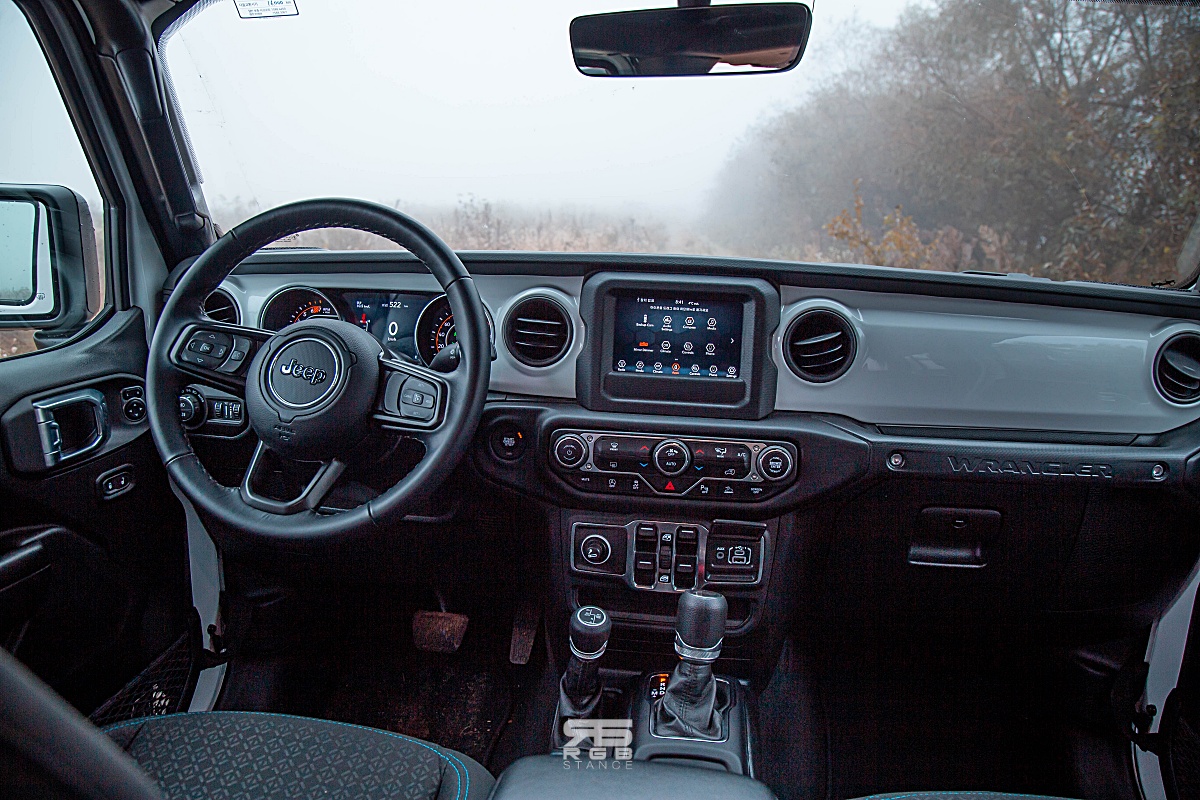 전체적인 모습은 다른 랭글러와 큰 차이를 알기 어렵다. 주유구는 키로 돌려서 열어야 하고, 수동 소프트탑이 사용되고 있는데, 전동식이 아니어서 조금 불편하다. 익숙해지면 금방 접고 닫고 할 수 있겠지만, 아무래도 귀찮다. 잠금장치를 풀고 탑을 다 젖혀야 하다보니, 전동식과는 다른 뛰어난 개방감을 준다고는 하더라도, 귀찮기는 하다. 그리고, 소프트탑의 특성상 새똥이나 비 등을 고려하면, 관리가 정말 쉽지 않다. 그리고 사이드스텝은 옵션으로 달아야 한다. 없으니 좀 불편하긴 하다.