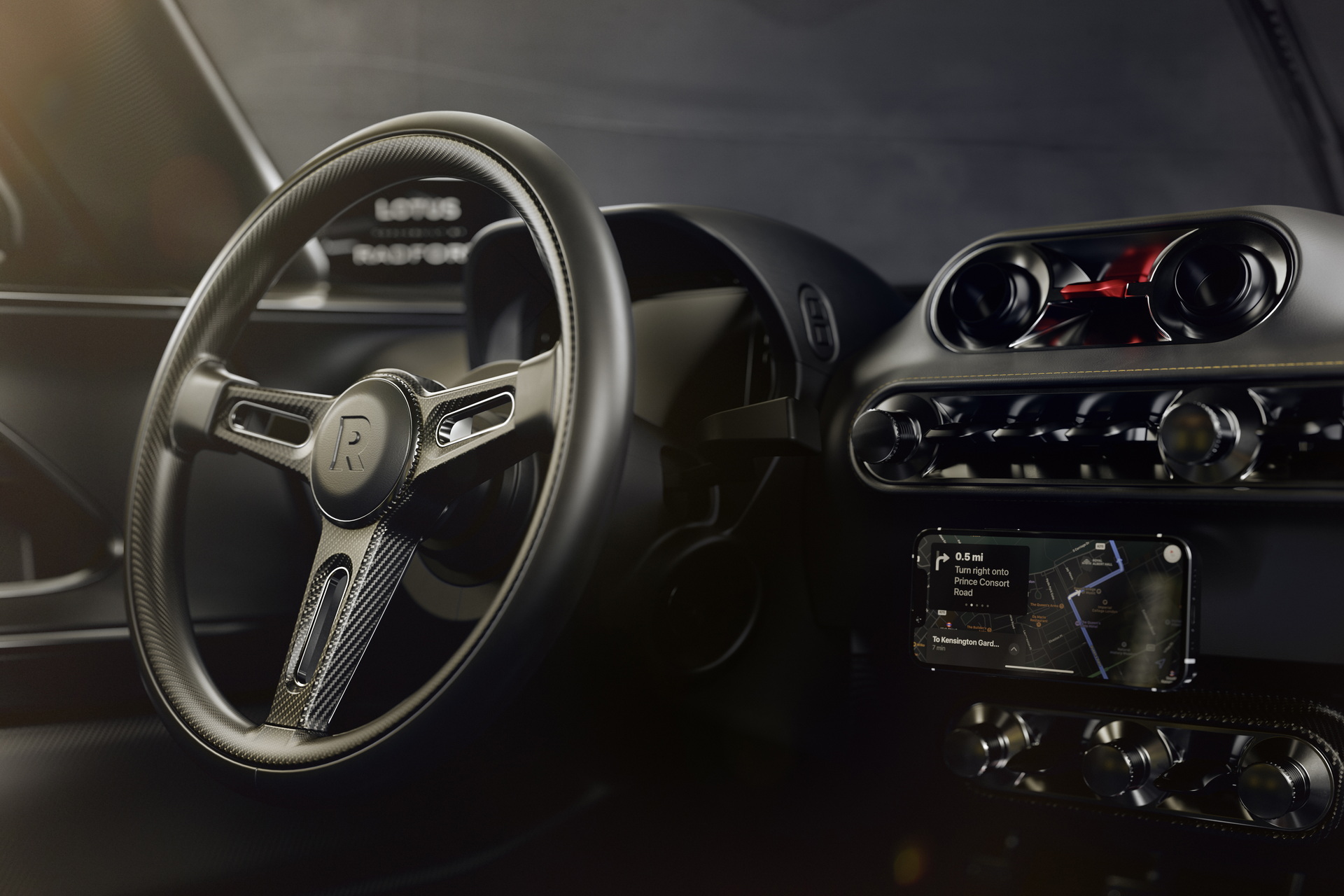 드디어 Radford Lotus Type 62-2 의 실내 모습이 공개되었다. 실내는 아날로그적인 모습과 함께, 카본파이버를 적극 사용하여 가벼우면서도 민첩한 움직임을 추구하는 경량 스포츠카로 로터스의 정신을 이었다. 그리고, 독특하게도 인테리어에 브레몽(Bremont) 시계를 사용하고 있다는 점도 특징이다.