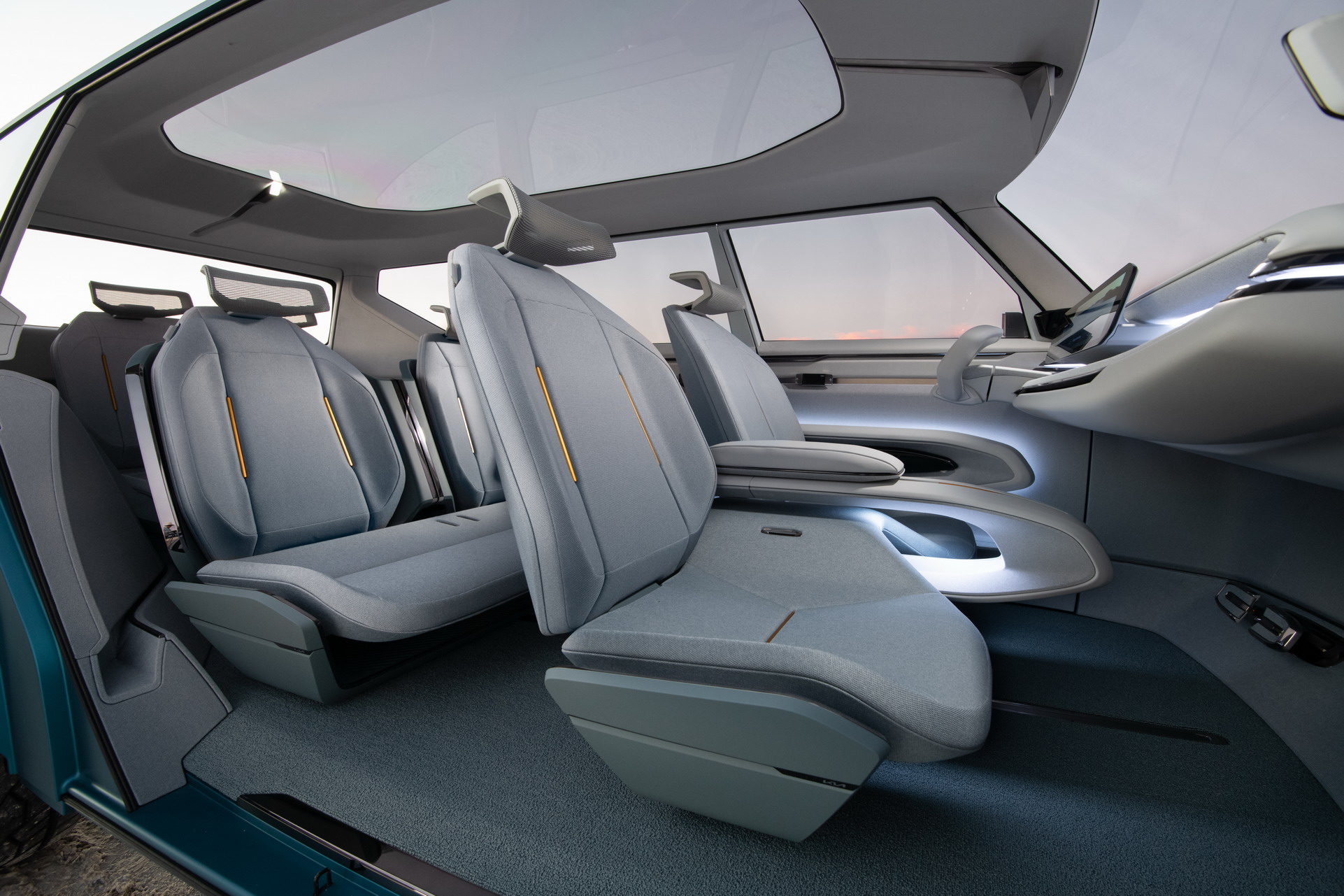 콘셉트 EV9은 주행과 정차 상황에 따라 시트 방향을 변경할 수 있는 3가지 실내 모드를 갖췄다. ‘액티브 모드(Active Mode)’는 주행을 위한 통상적인 차량의 시트 배열로 1, 2, 3열 모든 좌석이 전방을 향한다. ‘포즈 모드(Pause Mode)’는 3열은 그대로 둔 채 1열을 180도 돌려 차량 전방으로 최대한 당기고 2열 시트를 접어 탁자처럼 활용한다. 이 모드에서 승객들은 라운지에 있는 것처럼 1열과 3열에 마주 앉아 대화하거나 창 밖의 자연을 감상할 수 있다. ‘엔조이 모드(enjoy mode)’는 3열을 180도 돌리고 테일게이트를 열어 승객이 3열에 앉아 차량 외부를 보며 쉴 수 있는 모드다.