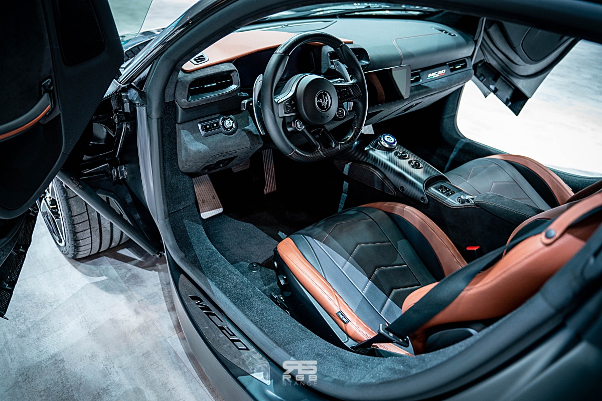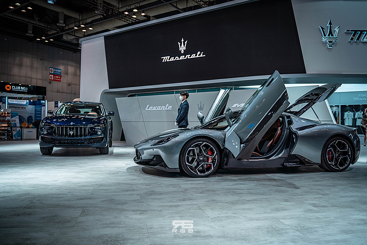 마세라티(Maserati) 에서는 미드쉽 슈퍼카 MC20 을 비롯해 르반떼 GT 하이브리드, 기블리 프라그먼트 LE 차량과 콰트로포르테 트로페어, 르반떼 F 트리뷰토를 전시하고 있다. 관심있게 볼 차량은 MC20 으로, 버터플라이 도어(Btterfly doors) 가 아름다우면서도 유려한 모습이 인상적이며, 3.0리터 V6 신형 네튜노(Nettuno) 엔진을 장착하고 최고 630마력, 최대토크 74.4kg.m 의 토크에 제로백 2,88초, 최고속도 326km/h 의 강력한 퍼포먼스를 보여준다.