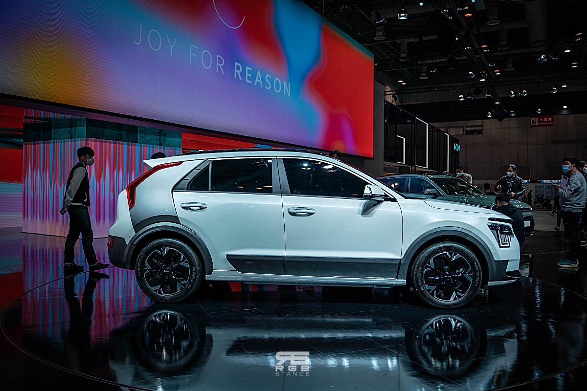 기아(KIA) 에서 가장 눈여겨 볼 차량은 바로, 신형 ‘니로(NIRO)’ 다. 5년만에 새롭게 출시한 2세대 모델로 ‘하바니로’ 컨셉트카의 컨셉을 계승해 미래지향적인 디자인이 인상적인데, 심플하고 하이테크한 감성으로, C 필러 라인에 맞춰 포인트를 준 것이 특징이다. 새로운 오퍼짓 유나이티드(Opposites United,상반된 개념의 창의적 융햡)를 적용해 독창적인 디자인을 보여주는데, 전면은 타이거 페이스 디자인을 후드에서 휀더까지 확장시켰으며, 심장 박동을 형상화한 LED DRL 이 미래지향적인 모습을 강조해준다.