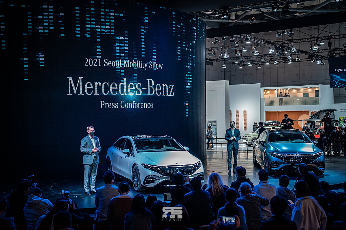 그리고, EQS 는 EQS 450 + AMG Line 을 전시했는데, 진보적이며 럭셔리한 디자인과 실내의 MBUX 디자인이 럭셔리함을 더해준다. 그리고 1회 충전시 478km 의 주행가능거리를 보여주고 있다. 그리고, 매우 넓은 실내공간을 보여주고 있다.