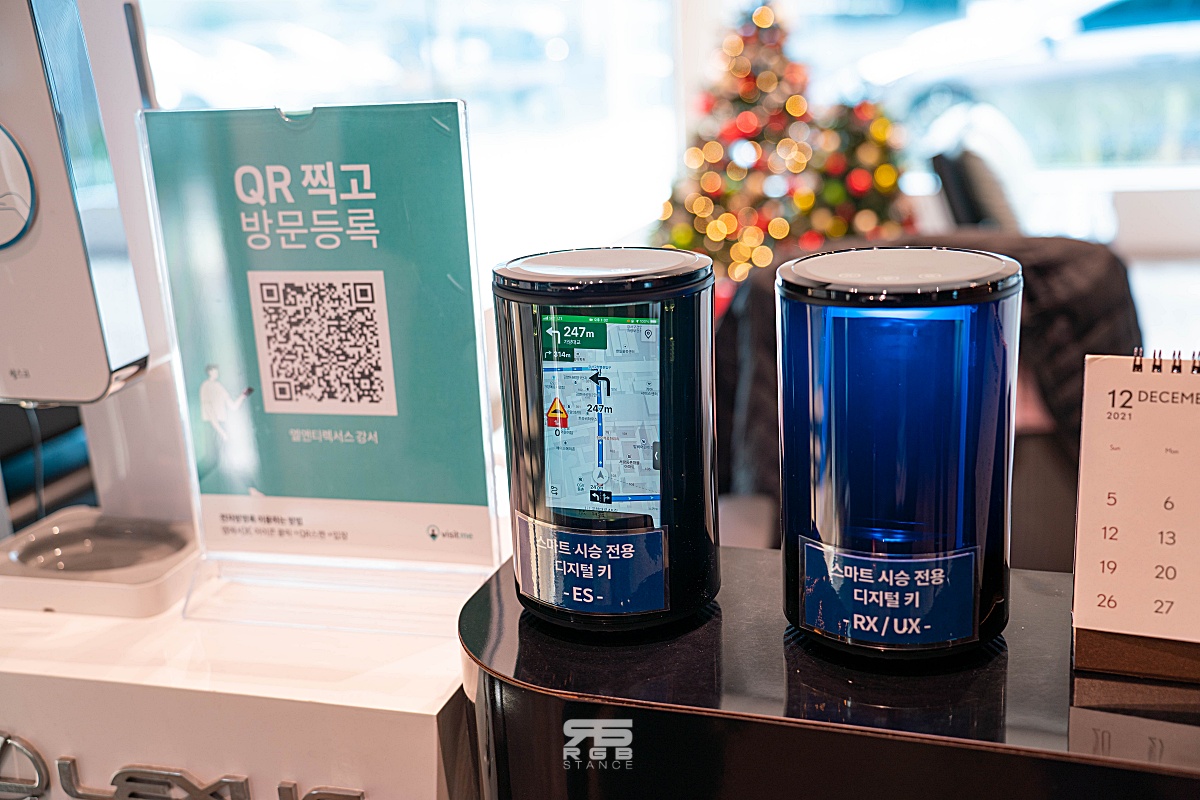 이후에 1층으로 내려와서 소독을 마친 스마트폰 (디지털키+내비게이션+SC통화가 연결된 스마트폰)을 수령 후에 시승차량으로 가면, 스마트폰을 통해 차량문을 열고 차량 시트조절 및 기본 안내사항을 숙지하고 스마트폰의 내비게이션 안내에 따라 시승을 진행하게 된다.