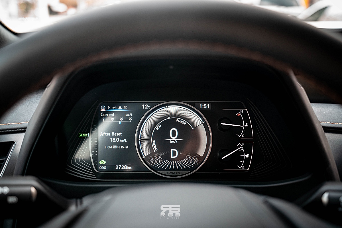 뒷쪽으로 돌아가면 날카로움이 전면부의 스핀들 형태를 모티브로 이어지며, 레이싱카의 리어윙에서 영감을 받아 만든 리어 콤비네이션 램프는 ‘에어로 라이트 블레이드’ 컨셉으로 테일램프의 중심을 따라 좌우로 연결되는 선이 만들어져 강렬한 인상을 안겨준다. 개인적으로는 렉서스 UX 의 디자인을 완성시키는 요소라고 생각된다. 그리고, 실내로 들어오게 되면 렉서스만의 감성을 바로 느낄 수 있다.