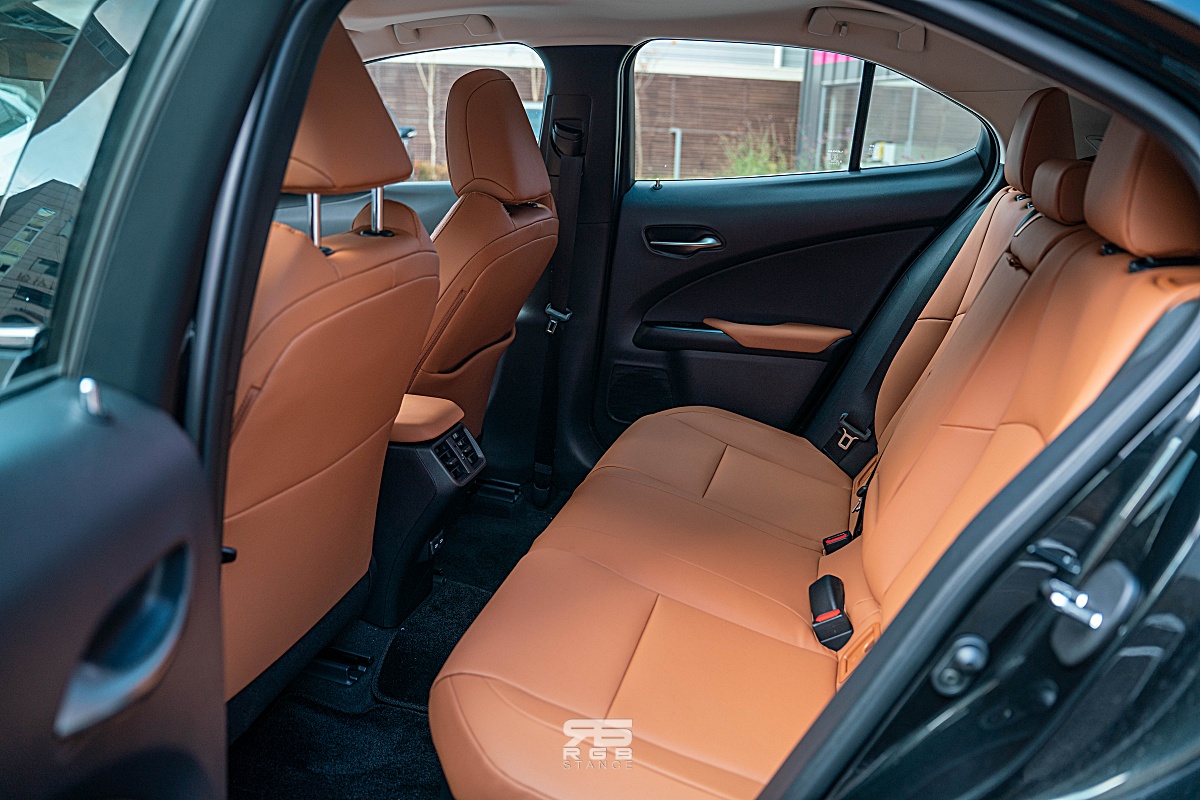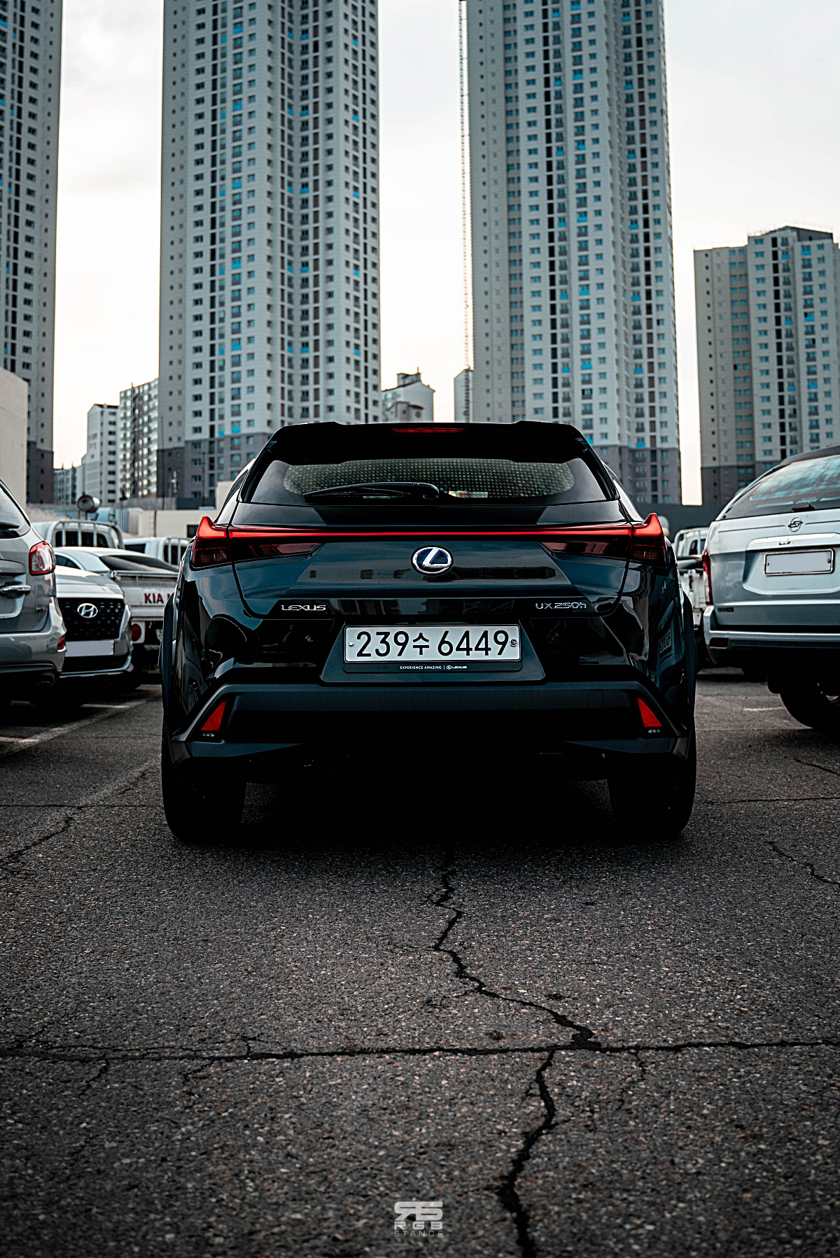 뒷쪽으로 돌아가면 날카로움이 전면부의 스핀들 형태를 모티브로 이어지며, 레이싱카의 리어윙에서 영감을 받아 만든 리어 콤비네이션 램프는 ‘에어로 라이트 블레이드’ 컨셉으로 테일램프의 중심을 따라 좌우로 연결되는 선이 만들어져 강렬한 인상을 안겨준다. 개인적으로는 렉서스 UX 의 디자인을 완성시키는 요소라고 생각된다. 그리고, 실내로 들어오게 되면 렉서스만의 감성을 바로 느낄 수 있다.