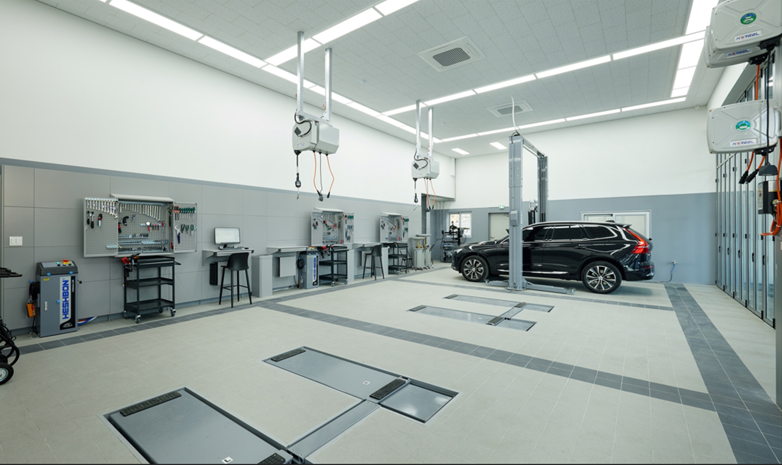 새롭게 문을 연 볼보 구리 전시장은 지상 3층, 총 연면적 998.86 ㎡ 규모로 1층에는 3개의 워크베이를 갖춘 서비스센터가, 그리고 2층에는 차량 전시 공간으로 구성됐다.