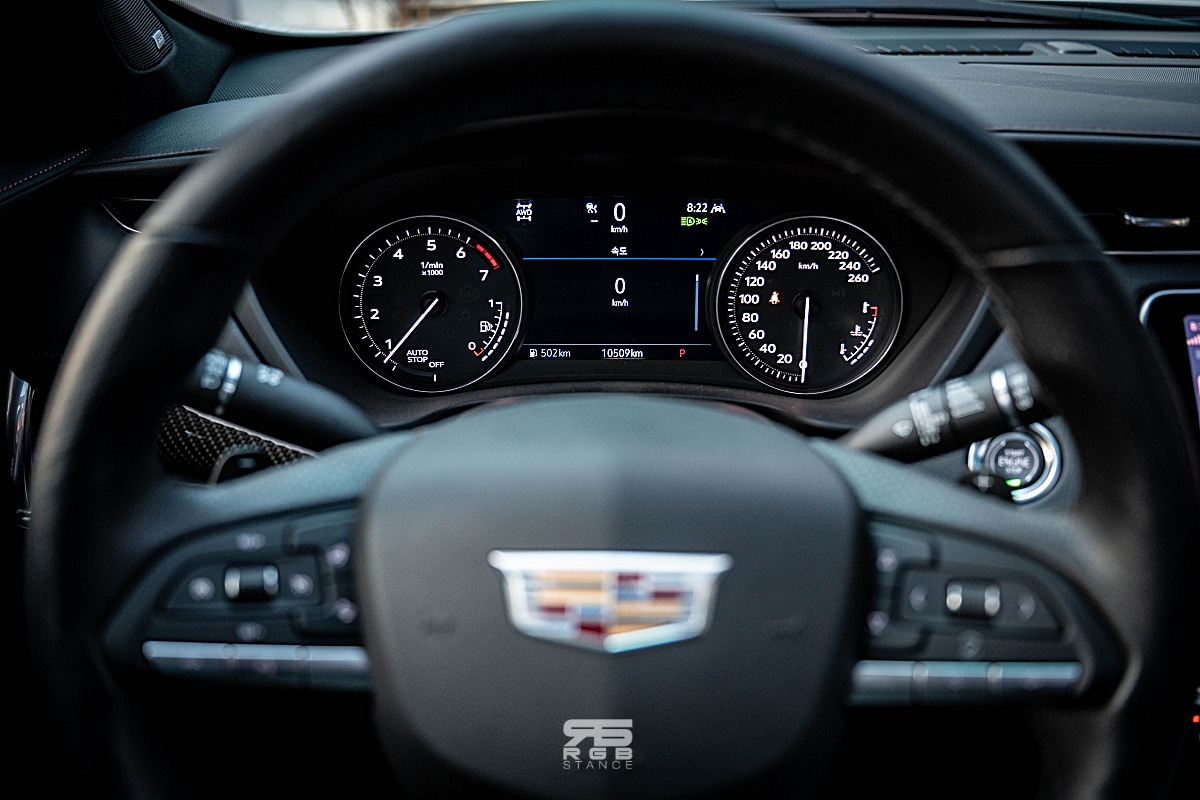 그리고, 3스포크 스티어링휠 너머로 보이는 디스플레이가 적용된 계기판은 아날로그틱하면서도 첨단의 모습을 보여주고 있다. 구성 자체는 나쁘지 않지만, 그래픽은 캐딜락만의 것을 경험시켜주었다면 어땠을까 하는 생각이 든다. 럭셔리함을 느끼게 해주려면 이런 그래픽에서부터 선긋기가 필요해보인다. 소재와 레이아웃은 좋은데 디테일에서 아쉽다.