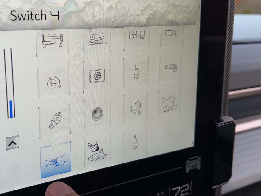 많은 아이콘들이 있고, 일부는 우주 캡슐이나 공룡 같은 이미지를 보여주기도 하는데, 얼핏 보면 모르지만 자세히 보면 분명 테슬라의 사이버 트럭을 확인할 수 있다.