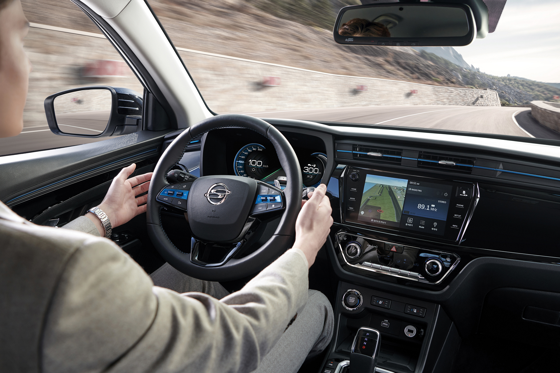 실내 인테리어는 하이테크 감성이 조화를 이룬 디지털 인터페이스 블레이즈 콕핏(Blaze Cockpit)은 △12.3인치 풀 디지털 클러스터 △9인치 인포콘 AVN △인피니티 무드램프의 조합을 통해 고도의 첨단기술과 세련된 감성을 느낄 수 있으며, 차량 키 및 스마트폰 없이 차량 외부에서 헤드램프 ON/OFF, 도어개폐, 공조기능 컨트롤 등은 물론 고전압 배터리 충전 상태를 확인할 수 있는 스마트 터치 패널(STPM)을 적용해 편리성을 더 했다.