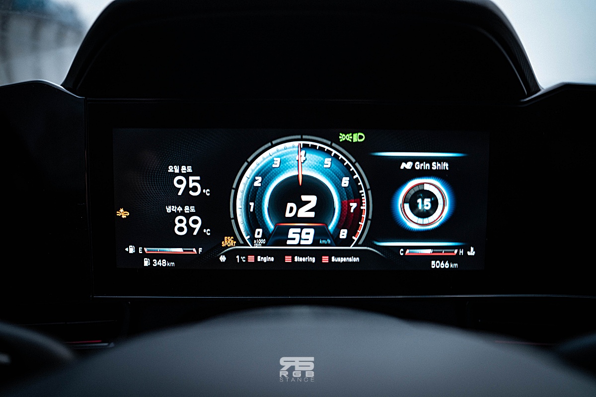 앰비언트 무드램프와 함께 10.25 인치 내비게이션에서는 N 그린 컨트롤 시스템에서 스티어링 휠, 서스펜션, 배기사운드, 엔진 사운드 등 다양한 커스터마이징이 가능하다. 이 외의 실내 구성을 살펴보는 것은 딱히 필요없어보인다. 아반떼 N 에서 편의성보다 더 중요한 것이 퍼포먼스니깐 말이다.