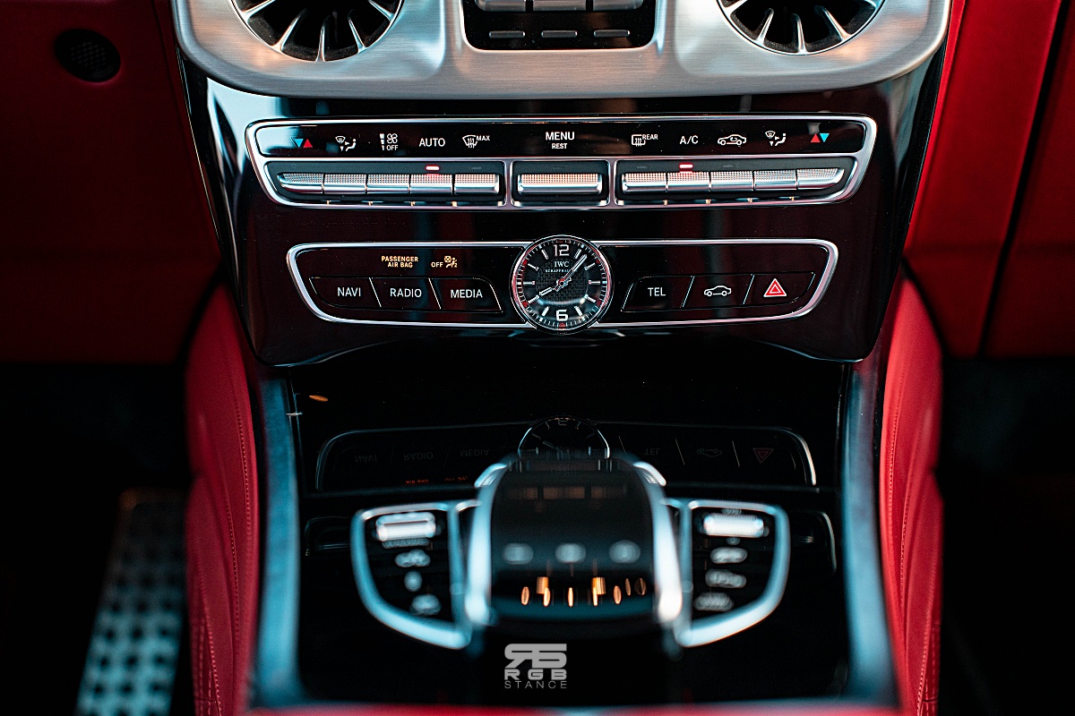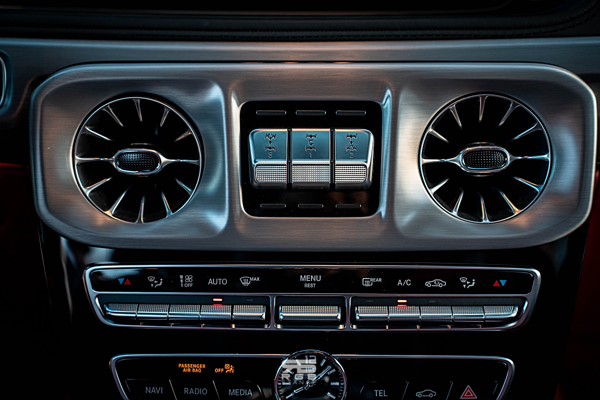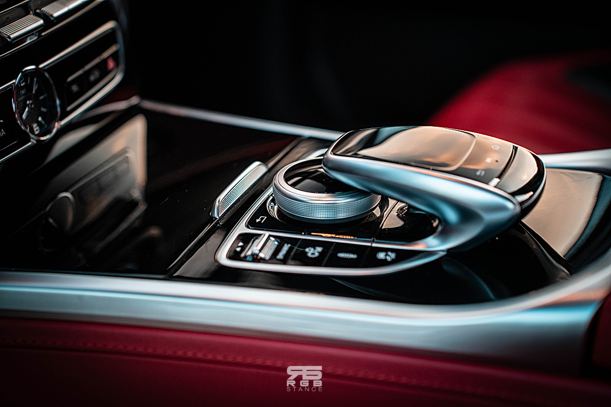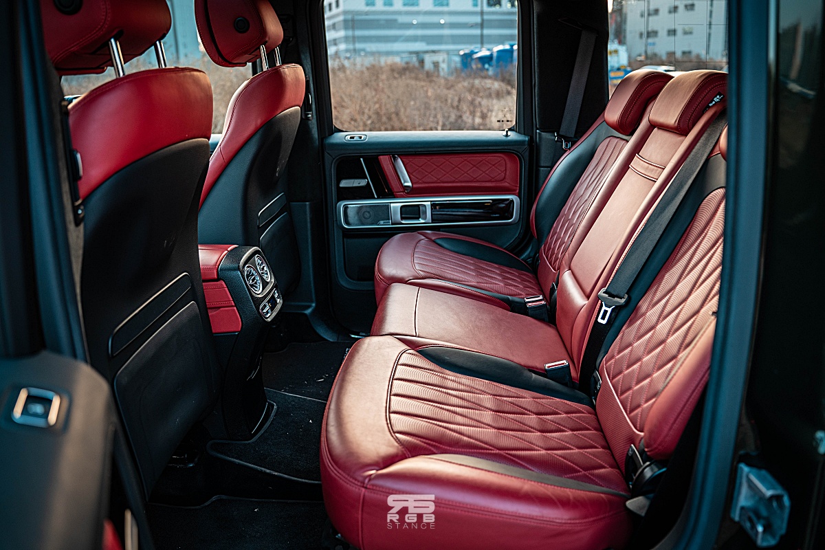자신감 넘치는 디자인은 실내에서도 이어진다. 내려다보는 높이가 꽤 있는 편인 G63 AMG 의 실내는 AMG 모델답게 카본파이버와 알칸타라로 장식된 휠과 함께 앰비언트 라이트 및 계기판과 인포테인먼트 디스플레이가 하나로 이어진 것처럼 길게 만들어진 와이드 스크린 콕핏이 실내를 더욱 고급스럽게 만들어준다. 여기에 고급스러운 나파가죽은 실내분위기를 한층 돋보이게 만들어주는데, 아쉽게도 디스플레이 터치는 되지 않는다. 그래도 애플 카플레이와 안드로이드 오토가 연결되어 조금 더 편리하게 사용이 가능하다.