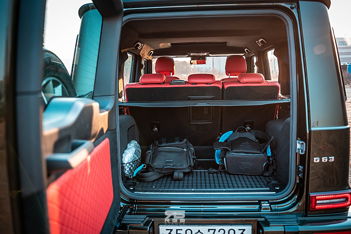 전체적으로 투박한 각진 모습은 전면부 뿐 아니라, 사이드 및 리어의 모습도 모두 강인한 각진 모습이다. 그 외 큰 변화는 알아차리기 힘들다. G바겐은 테일게이트의 스페어휠까지 독특함이 가득하다. 그리고 최대 3.5톤까지 견인 가능한 트레일러 커플링은 이 차량의 성격을 확실하게 보여주고 있기도 하다. 더 이야기할 것 없이, G 바겐 그 자체다. 실내는 고급스러움과 투박함의 중간을 보여준다.