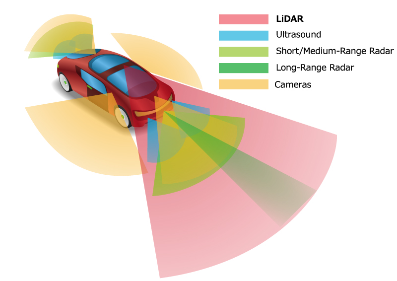 라이다(Lidar) 는 레이저를 사용하여, 주변 환경을 3D 로 구현하는 것인데, 가격이 매우 비싸며, 전력소모가 크다. 레이저 펄스를 발사해서 돌아오는 시간을 측정해 공간을 분석할 수 있는 저이 큰 특징이며, 전파를 사용해 거리/ 속도를 측정하는 레이더와 비교해서도 꽤 가격이 비싸기 때문에, 엘런 머스크는 라이다보다 AI 기능이 강화된 카메라를 사용하는 것을 더 선호하고 있다. 하지만, 라이다는 광학식 카메라와 달리, 레이저 펄스를 사용하기 때문에, 기상 상황에 상관 없이 정확한 주변상황 인식이 가능하다는 큰 장점이 있다. 때문에 안전해야 하는 자율주행 차량에서 라이다의 사용은 필수적인 것으로 자리잡아가고 있다.
