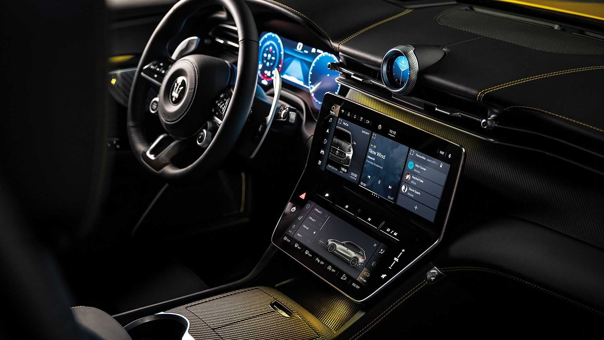 마세라티 그리칼레에는 4개의 디스플레이가 존재한다. 계기판과 함께 센터 콘솔에 두개의 터치스크린이 있는데, 계기판과 센터 콘솔 상단의 터치스크린은 12.3인치이며, 하단은 8.8인치 디스플레이이며, 놀랍게도 시계도 디지털 화면으로 작동된다. 마세라티 그리칼레의 HUD 는 옵션이다.