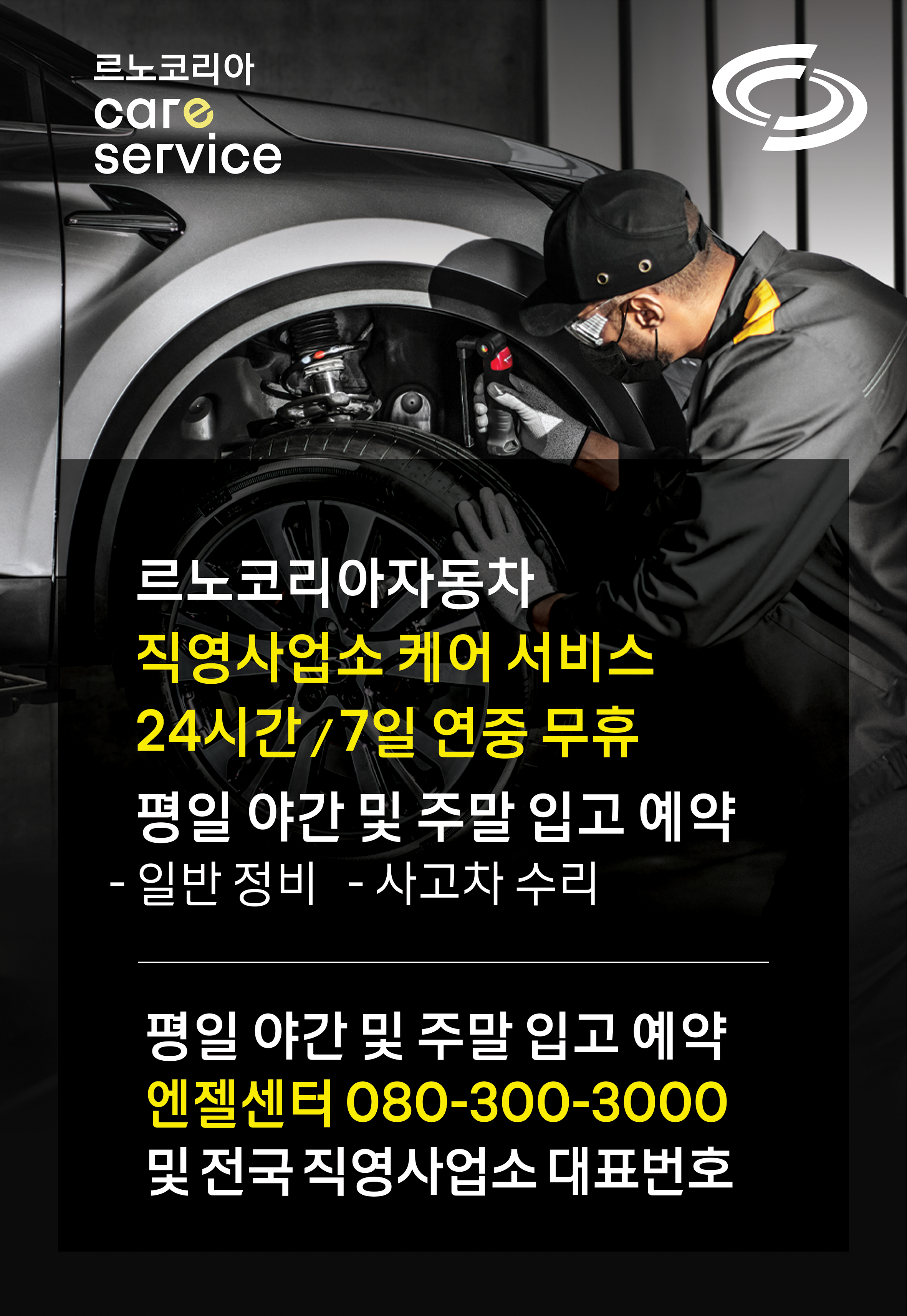 또한 이번 케어 서비스 캠페인을 시행하면서 평일 주간 바쁜 일정으로 직영 서비스센터 방문이 어려운 고객들을 위해 평일 야간 및 주말 입고 서비스를 함께 선보였다. 직영 서비스센터 운영이 종료되는 평일 오후 6시 이후 또는 주말에 르노코리아자동차 직영 서비스센터에 방문하는 고객은 엔젤센터 또는 전국 직영 서비스센터 야간 접수처를 통해 차량을 입고시킬 수 있다. 입고가 완료된 차량은 다음 날 해당 직영 서비스센터에서 수리 완료 예정 일자를 파악해 고객에게 별도 안내를 진행한다.