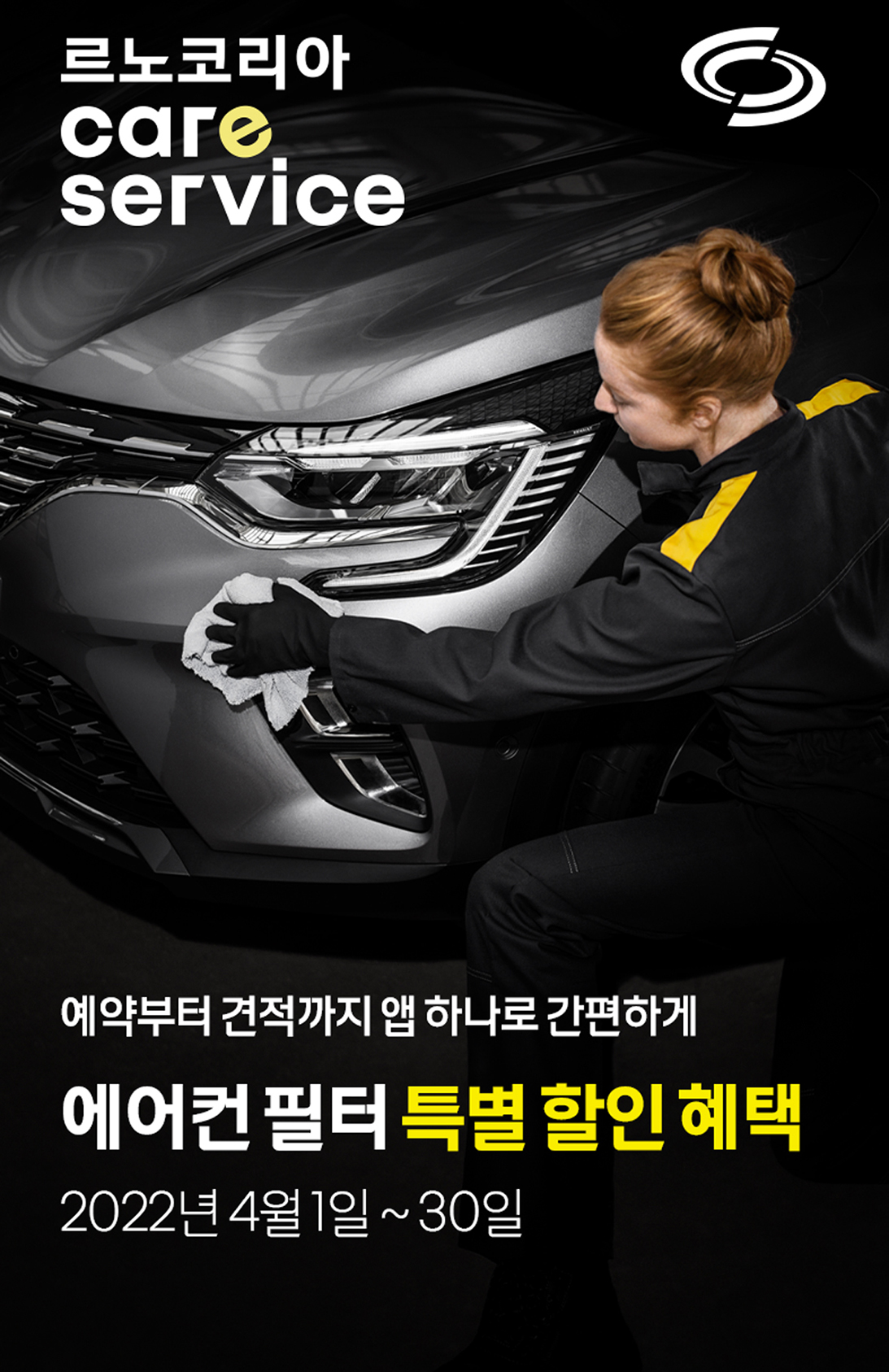 르노코리아자동차는 고객 만족도 6년 연속 1위에 빛나는 자사의 AS 서비스 강점이 기존 고객들은 물론 잠재 고객들에게도 확산될 수 있도록 ‘케어 서비스 캠페인’을 런칭했다. 우선 캠페인 런칭을 기념해 4월 한 달 간 자사 모바일 앱 회원을 대상으로 프리미엄 에어컨 필터 교환 시 20% 할인, 일반 에어컨 필터 교환 시 15% 할인 혜택을 제공한다. 비회원 고객의 경우 프리미엄 에어컨 필터 15%, 일반 에어컨 필터 10% 할인 혜택을 받을 수 있다.
