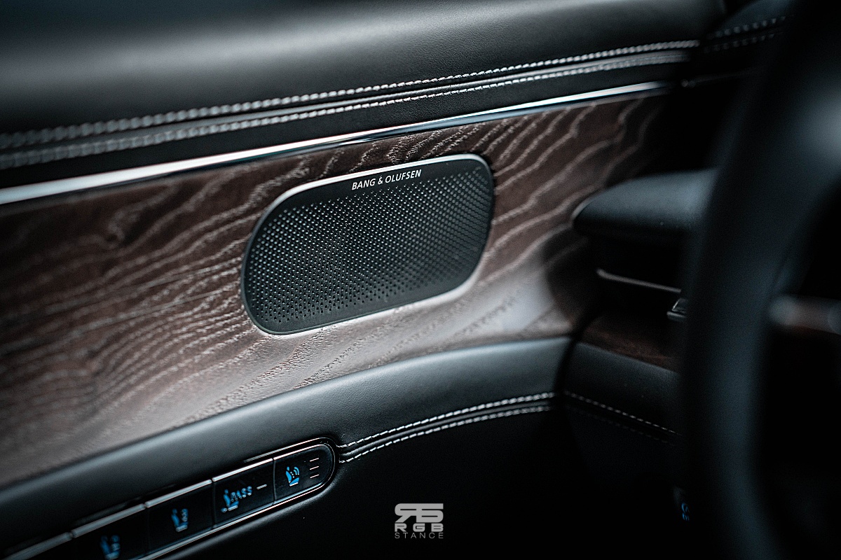 G90 의 외관에서 눈여겨볼만한 포인트는 측면부의 C필러인데, 두터운 C 필러와 함께, 뒷좌석의 프라이버시 보호와 함께 최고급 세단에 걸맞는 안정적 이미지를 완성해주는 것이 특징이다. 이제 독특한 오토플러시 도어손잡이를 잡고 문을 열어 실내로 들어가면, 새로운 럭셔리를 경험할 수 있다.