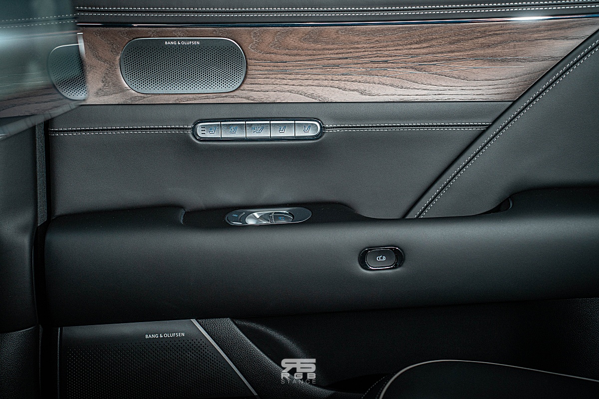 말 그대로 G90 은 오너드리븐은 물론, 쇼퍼(Chauffer)드리븐까지 만족시키기에 충분하다. 보통은 운전석부터 보여주고 시작하지만, 뒷좌석부터 보여주고 싶은 이유가 있다. 일단 문을 열고 닫는게 독특한데, 실내에서는 도어손잡이를 찾아볼 수 없고, 버튼만 있다. 간혹 SNS 에서 G90 문 여는 법을 몰라서 쪽팔렸다는 주작글을 볼 수 있는데, 처음 타보면 모르는 것이 당연하다. 이 방식은 꽤나 편리하고 고급스러운데, 버튼 하나만 누르면 부드럽게 도어가 열리고 닫힌다. 럭셔리 세단다운 소프트클로징 기능으로 문을 닫을 필요 없어 승하차시 탑승자의 품격을 지켜준다. 참고로, 운전석에서 문을 열고 탄 후에 브레이크만 밟아도 알아서 도어가 닫히며, 콘솔의 버튼만 눌러도 자동으로 도어가 닫히는 편의성을 보여준다.