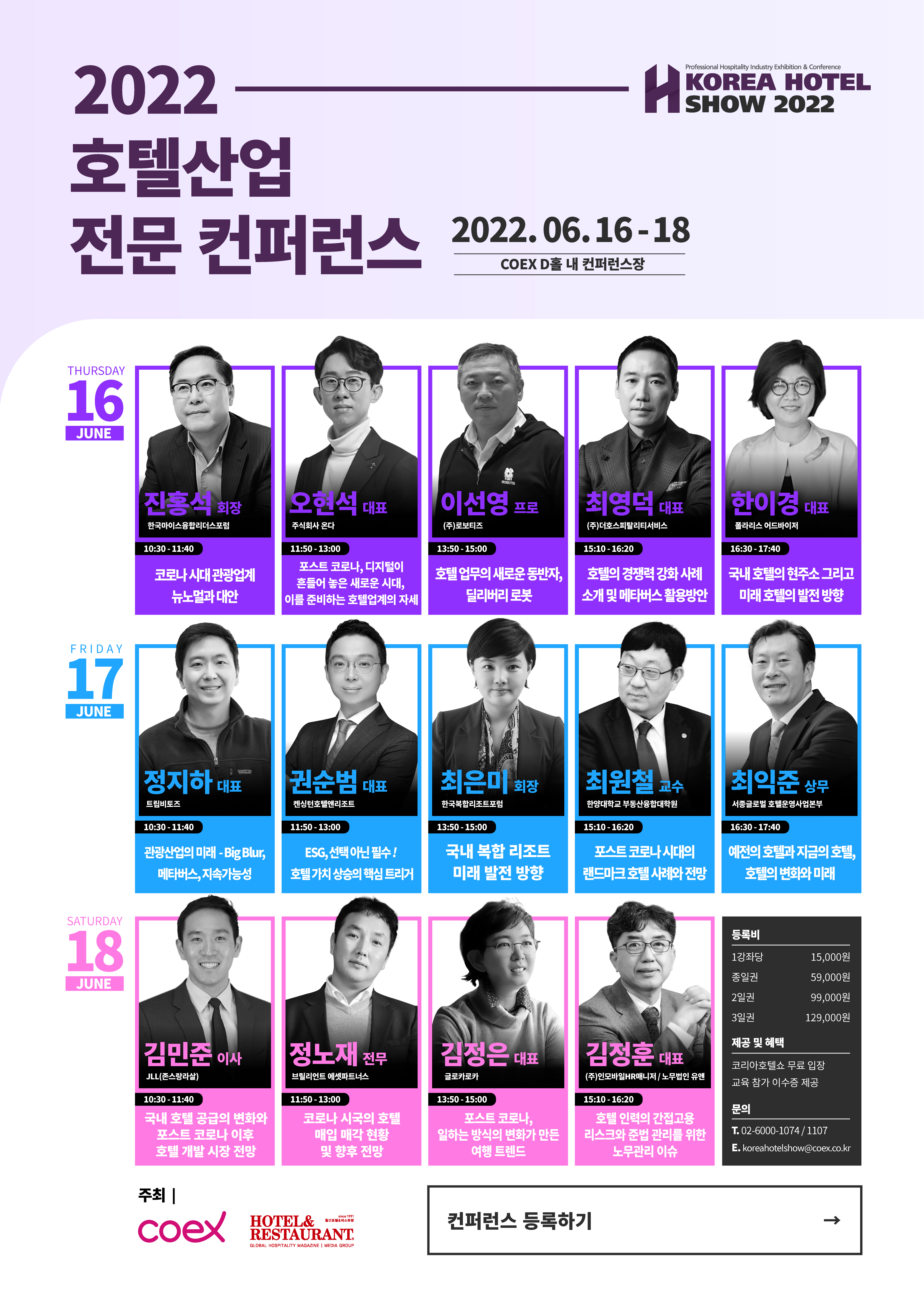 또한, 호텔산업 전문 컨퍼런스 및 강의가 진행되는데,컨퍼런스 스케쥴은 다음과 같다.