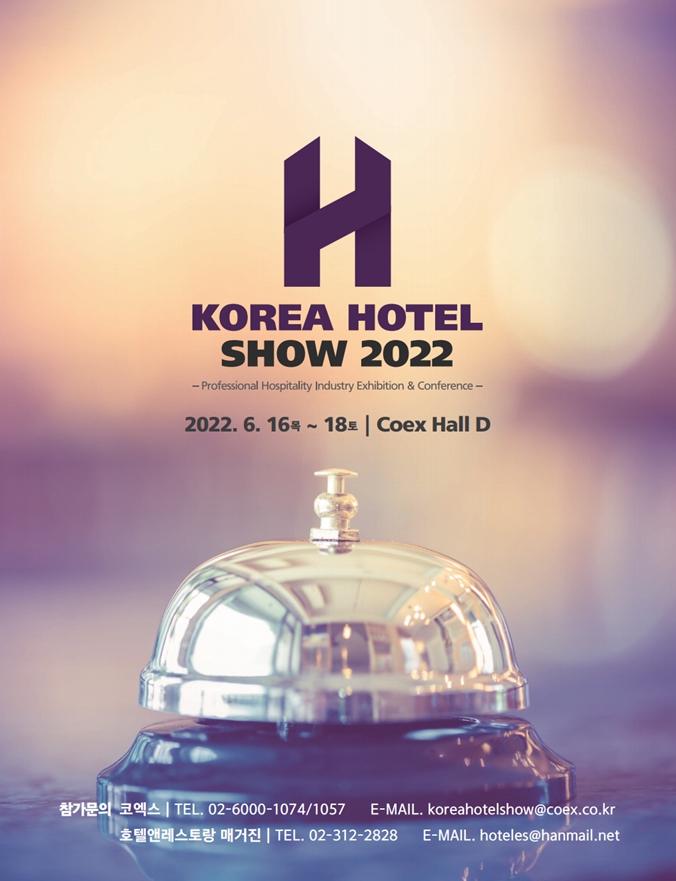 2022년 6월16일(목)부터 18일(토)까지 서울코엑스D 홀에서 제10회 코리아호텔쇼가 열린다. 코리아호텔쇼(Hotel Show)는 호텔앤레스토랑매거진에서 2020년까지 일산 킨텍스 및 부산과 제주에서 총8회간 진행했던 국내 최대규모, 국내 유일의 숙박산업 전문전시회로, 글로벌한 전시개최를 위해 2021년부터 코엑스에서 리브랜딩한 전시회이며, 국내호텔/숙박산업 유일의 B2B 전시회이다.