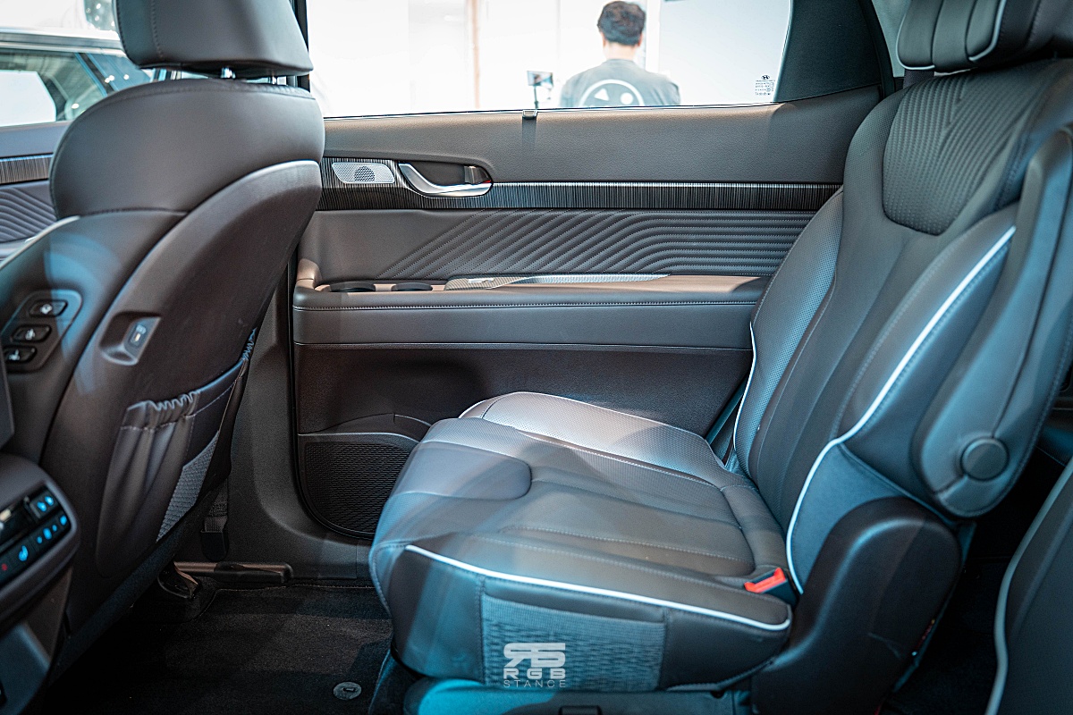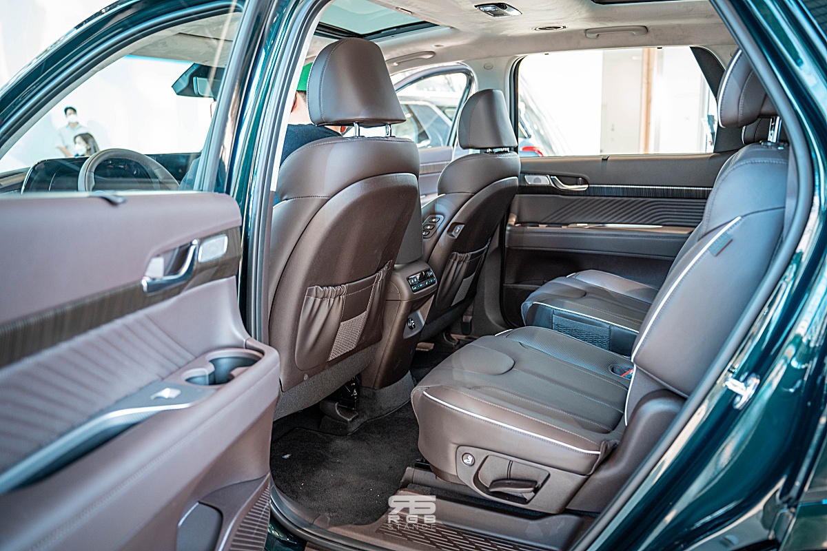 또한, 실내에서 운전자의 피로도를 낮춰주기 위한 ‘에르고 모션 시트’ 가 적용되었고, 릴렉션 시트를 적용해 차량내에서 휴식을 취할 수 있도록 한 동시에, 2열 윙타입 헤드레스트, 2열 벤치 시트 통풍 기능과 3열 시트 열선 기능 등을 통해 탑승자들을 배려한 한편, 팰리세이드가 말하고 싶었던 ‘각자의 공간’ 을 만들어주고 있다.