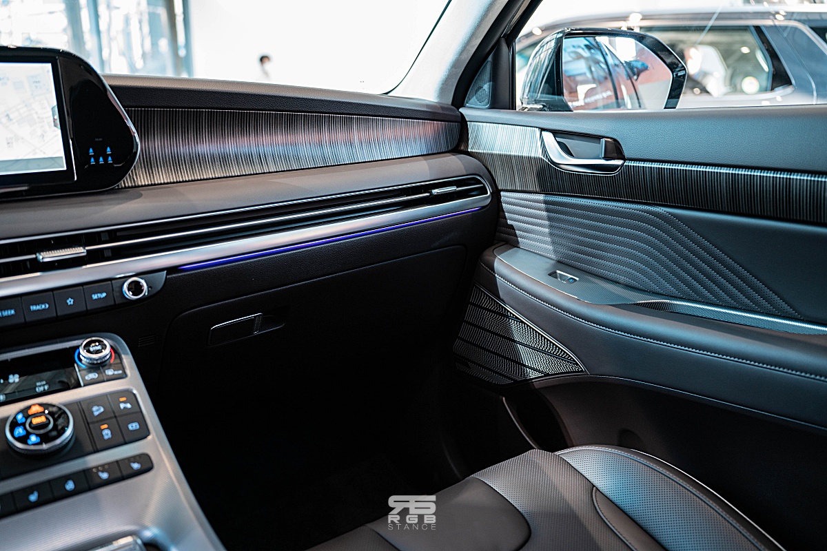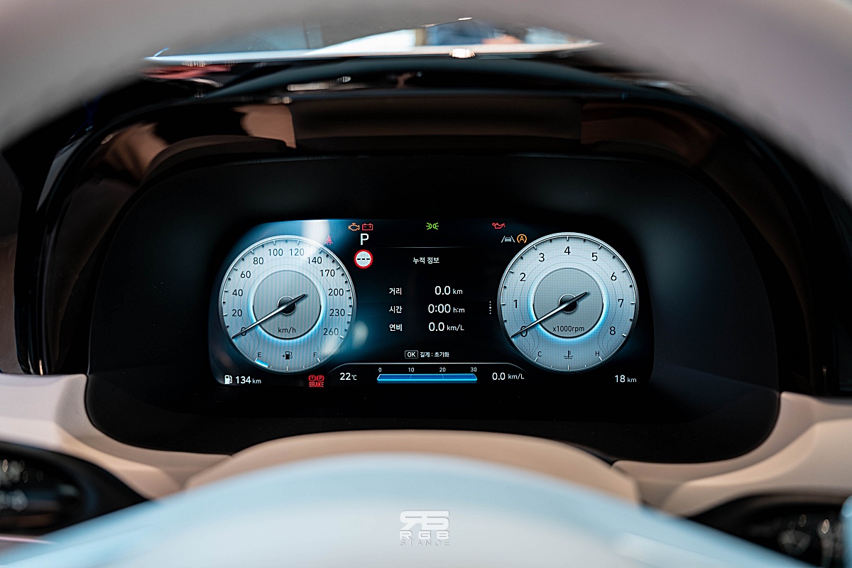 우선, 내비게이션이 10.25인치에서 12.3 인치로 커졌으며, 에어벤트 디자인이 제네시스처럼 가로형으로 안정적인 모습을 연출해주고 있으며, 메인패드는 볼륨감을 높여 입체적인 느낌을 강조했다. 그리고, 크래시패드에 적용된 무드라이트가 운전석에서부터 조수석까지 얇고 길게 연결되어 고급감을 더해주고 있다.