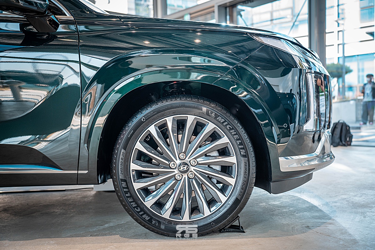 프론트 그릴의 일부인줄 알았던 부분은 방향지시등이며, 전시되어 있던 캘리그래피 모델과 프레스티지 및 익스클루시브 모델의 프론트 그릴은 크롬과 블랙 유광으로 각기 디자인을 달리하고 있다. 휠은 모두 20인치를 사용하고 있지만, 마찬가지로 각 모델의 휠 디자인은 다르다.