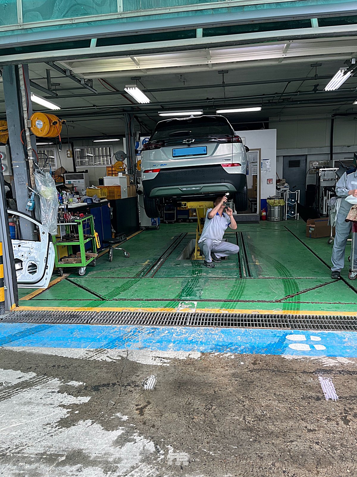 독자 A 씨는 최근 쉐보레 볼트 EUV 의 휠 불량으로 교체판정을 받고 휠교체와 단차 수리를 위해 쉐보레 서울서비스센터를 방문했다. 쉐보레 직영이기도 해서 믿고 갔는데, 너무나도 황당한 일을 겪었다는 것이다. 우선 휠 교체를 서비스센터를 방문했던, 고객 차량에 휠을 싣고 외부 사설업체에서 교체를 하고 왔다. 굳이 사업소가 있는데 왜 외부로 나갔는지 황당한 가운데, 다시 사업소로 돌아와 단차수리를 위해 리프트 위에 차량을 띄웠는데, 차량을 띄우기 위한 리프트 포인트가 정상적인 잭포인트가 아닌, 배터리를 떠받치고 있었던 것이었다. 가뜩이나 A 씨는 시트 커버도 안씌우고 정비복을 입은 상태로 차량에 타는 것도 마음에 들지 않은 상황에서 문제가 있는 것이 아니냐며 따졌지만, 쉐보레 서울사업소에서는 사과도 없었고, 리프트 이용에 별 문제가 없다는 반응이었다.