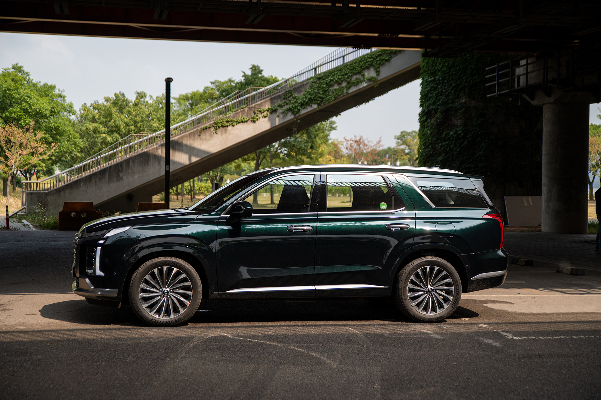 웅장해졌다라는 표현이 어울린다. 외관 부분에서 가장 눈에 띄는 부분은 바로 ‘프론트 범퍼’ 다. 파라메트릭 실드(Parametric Shield) 디자인으로, 볼륨감이 더해진 팰리세이드는 굵고 넓어진 캐스케이드 그릴과 헤드램프, 주간주행등(DRL)이 하나로 이어진 통일감 있는 디자인이 인상적 이며, 기존 수직형DRL이 더 두꺼워졌다. 이렇게 팰리세이드는 와이드하고 강인한 모습으로 바뀌었고, 뒷모습 역시 강렬한디테일을 더했다.