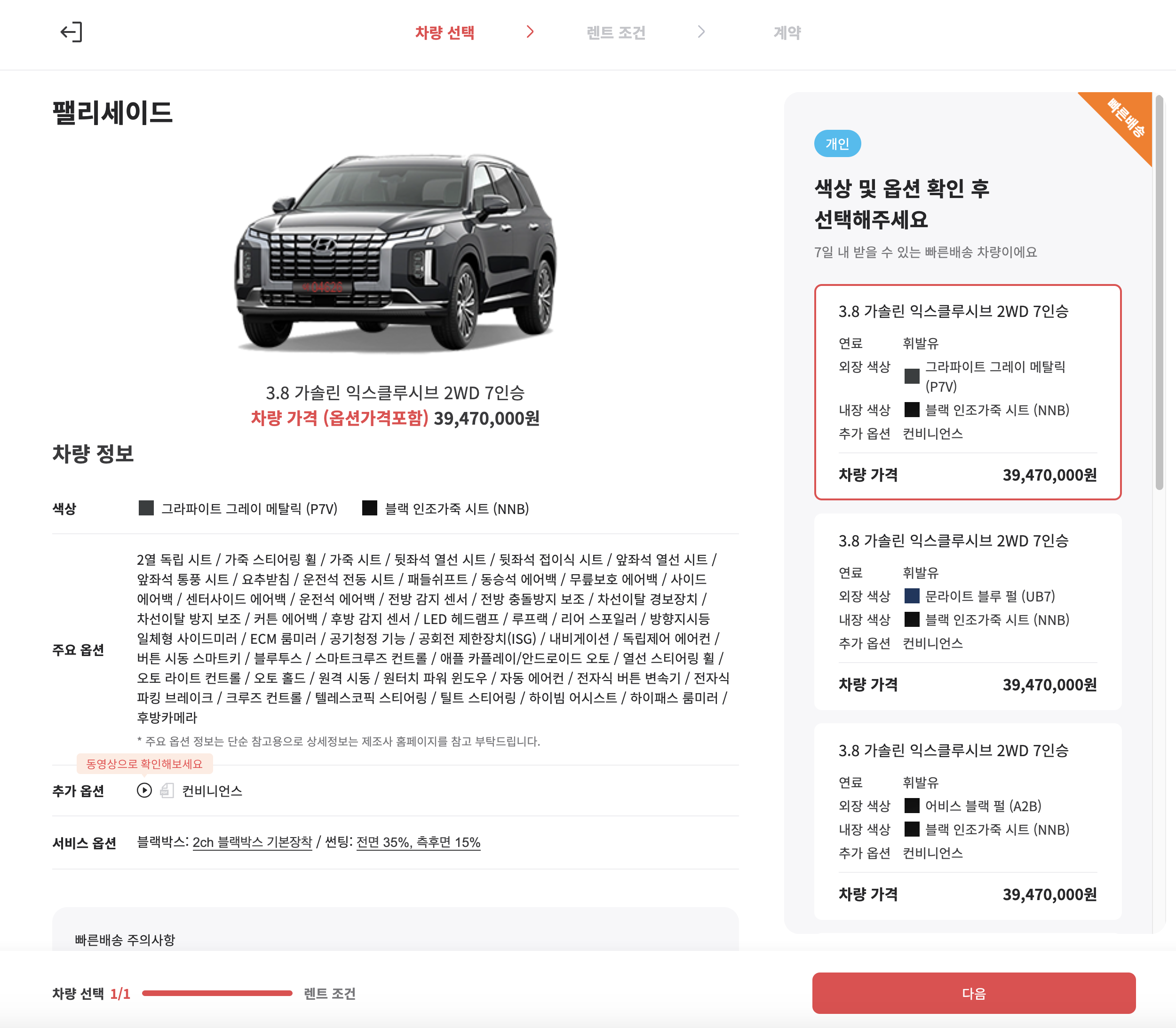 그리고, 신형이 부담스럽고 디자인과 가격적인 메리트가 이전 세대 팰리세이드가마음에 든다면, SK렌터카 다이렉트를 통해 합리적인 가격으로 구형모델도 장기렌트로 이용할 수 있다는 점도 잊지 말자.