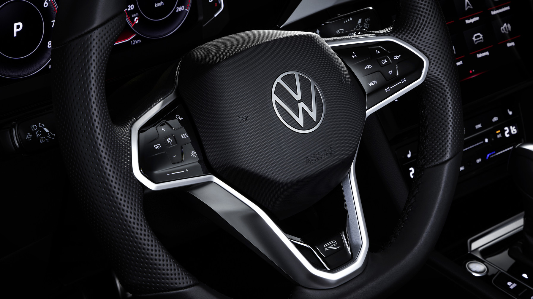 실내 인테리어 역시 블랙 컬러를 중심으로 한 R-Line 디자인 요소가 적용돼 외관의 스포티한 느낌이 내부까지 이어진다. 가장 먼저, 스티어링 휠 스포크 하단에 R-Line 로고가 배치되어 있으며, A필러에는 블랙 헤드라이너가 적용된다. 이와 함께 블랙 컬러의 티타늄 나파 가죽 R-Line 전용 시트가 장착돼 통일감 있는 실내 분위기를 완성한다. 마지막으로 ‘하만 카돈’ 사운드 시스템이 탑재되어 전 좌석에서 풍부하고 생동감 있는 사운드를 감상할 수 있다.