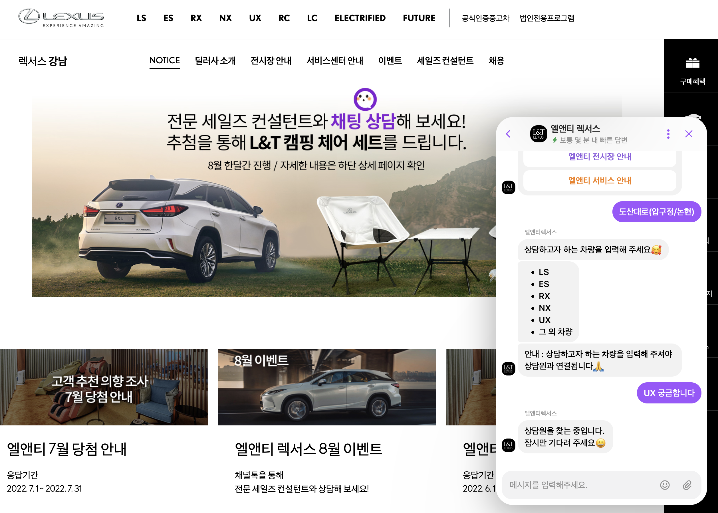 렉서스 상담받고 캠핑체어&테이블 받자 – 엘앤티렉서스 8월 이벤트