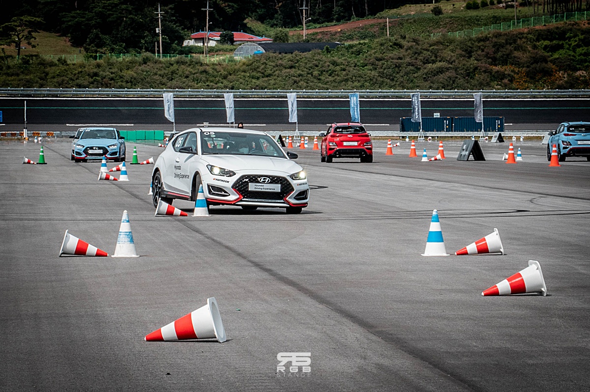 주헹체험 코스를 위해 각 코스별로 다른 차량을 타고 이동하게 되는데, 벨로스터 N, 아반떼 N, 스팅어, G70 및 팰리세이드, 모하비 등 SUV가 각 코스에 맞춰 준비되어 있었다. 다양한 코스 중 짐카나와 슬라럼을 경험할 수 있는 다목적 주행코스에서는 벨로스터 N 을 타고 정지상태에서 빠른 가속을 해보는 드래그 레이스 및 브레이킹과 장애물 회피 등을 통해 차량의 운동성능을 확인할 수 있었다. 정말 간만에 심장이 두근거리는 짜릿한 경험이었다. 처음 경험해보는 사람들에게는 운전실력을 향상시킬 수 있는 기회가 될 수 있을 것으로 보인다.