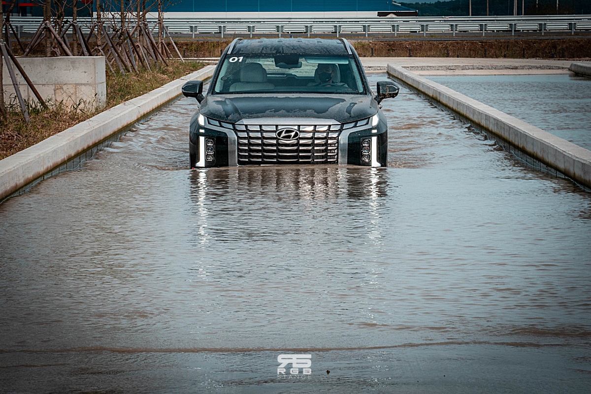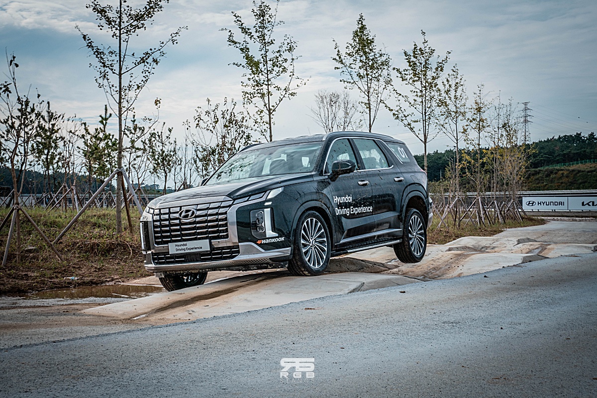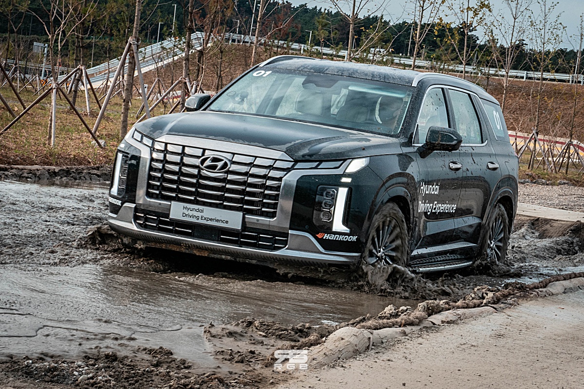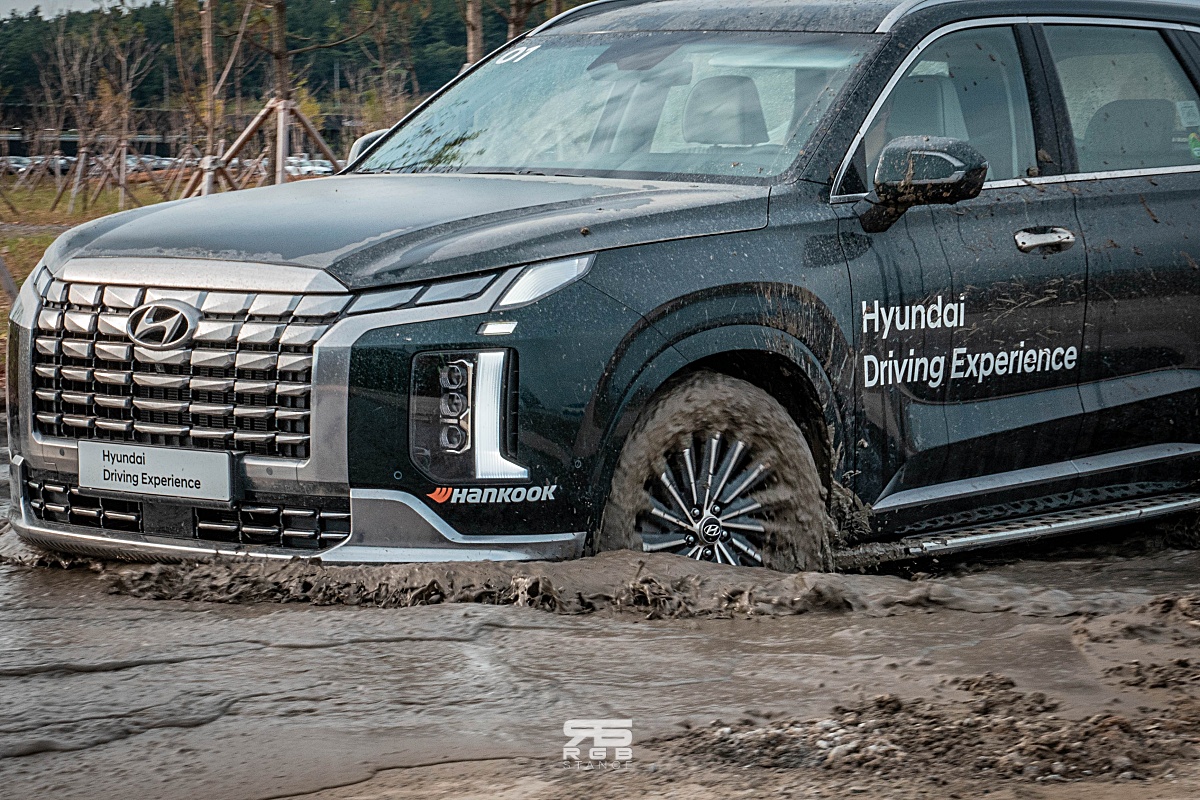 고속주행과 함께 코너를 즐기는 짜릿함을 즐기고 나면, 다른 짜릿함을 또 즐길 수 있다. 바로, 오프로드 코스인데, 최대 45cm 의 깊이를 보이는 물웅덩이과 절벽같은 70% 의 경사로 및 모래밭길, 자갈길, 갯벌주행 등 다양한 장애물 코스에서 오프로드의 짜릿함을 즐길 수 있다. 팰리세이드나 모하비 등의 SUV 로 오프로드 체험을 해보는데, 보통 도심형 SUV 로만 생각했다가 범피코스를 비롯해 측면 비탈길이나 높은 경사로와 모래밭길 등 차량이 다니기 힘든 코스를 주파해내는 것을 보며, 차량의 성능에 대해 “이게 되네!?” 라며, 다시금 깨닫는 계기가 되기도 하는 체험 코스였다.