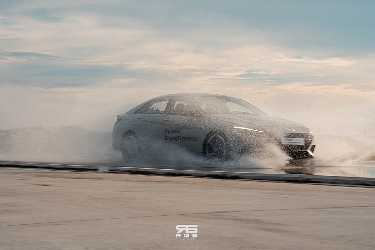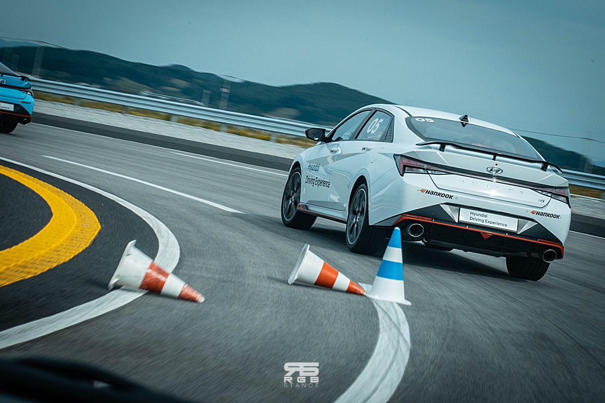 HMG 익스피리언스 센터에서는 계속해서 짜릿한 주행경험을 이어가는데, 마른노면 서킷에서는 아반떼 N 을 타고 조종 안정성을 테스트 해 볼 수 있었다. 총 길이 3.4km 에 16개의 코너로 구성된 마른노면 서킷은 직선 구간의 최대 길이가 670m 이고, 최고속도 190km/h 를 낼 수 있어서 짜릿함을 경험할 수 있으며, 전문 드라이버가 따로 택시주행까지 해주어 차량의 성능을 더욱 쥐어짜내보는 한계주행 체험까지도 경험할 수 있다. 이러니 심장이 두근거릴 수 밖에!