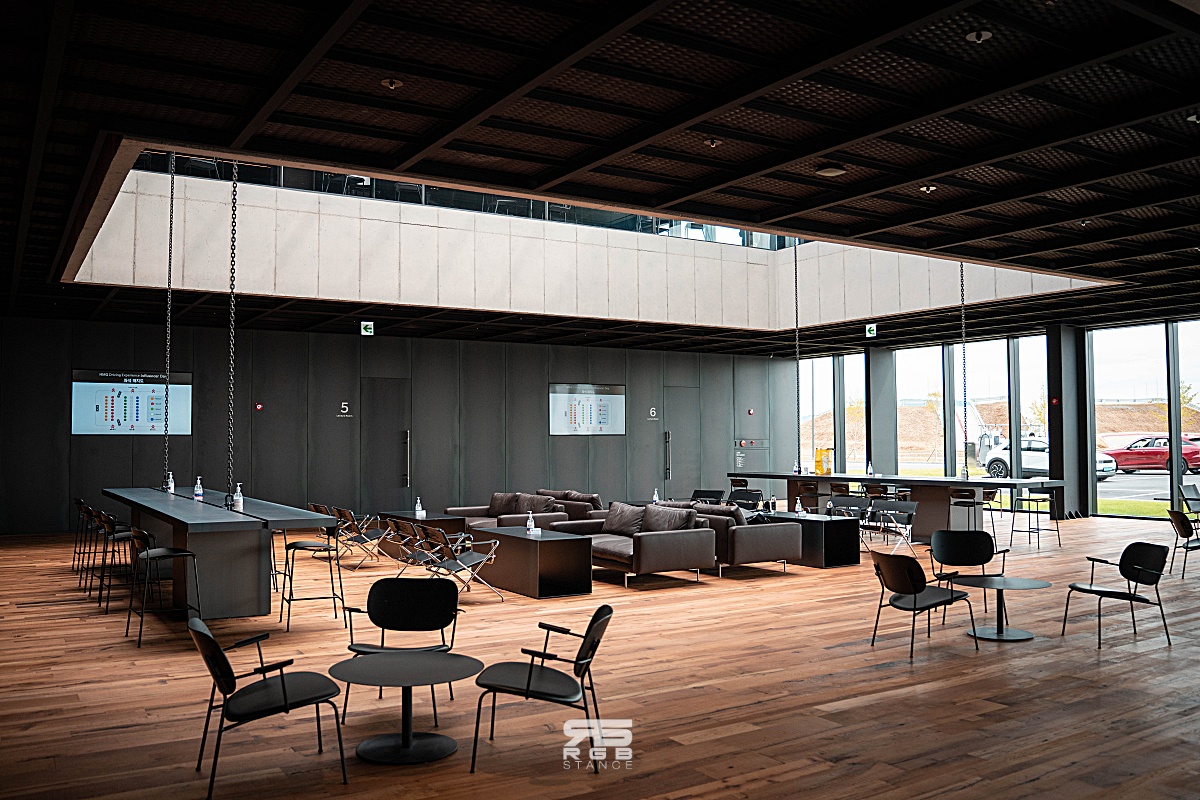 HMG 드라이빙 익스피리언스 센터에 들어오면, 엄청난 규모에 일단 압도된다. 고객 전용 건물로 들어서면, 현대 기아의 다양한 자동차들이 전시되어 있으며, 최근 부산모터쇼에서 공개되었던 N Vision 74 가 가장 먼저 눈길을 끈다. 움직이는 연구소 ‘롤링 랩’ 을 표방하는 N Vision 74 와 함께, 현대기아의 친환경 차량들이 전시되어 있고, 한쪽에는 서킷을 게임 형태로 달려볼 수 있는 시뮬레이터 체험공간이 있어서 가족단위로 방문을 해도 충분히 다양한 경험을 할 수 있도록 해놓은 점이 눈길을 끈다.