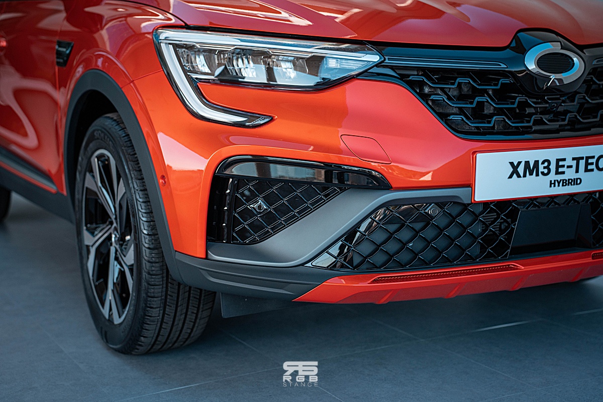 일반 XM3 와 비교해서 XM3 E-Tech 하이브리드(이하 XM3 하이브리드) 는 디자인적으로는 큰 변화를 보이지 않는다. 다만, F1 에 사용되는 다이나믹 블레이드 범퍼가 적용되었고, 하이브리드 전용 컬러인 일렉트릭 오렌지와 웨이브 블루 컬러를 도입해 더욱 돋보이는 모습을 보여주고 있다.