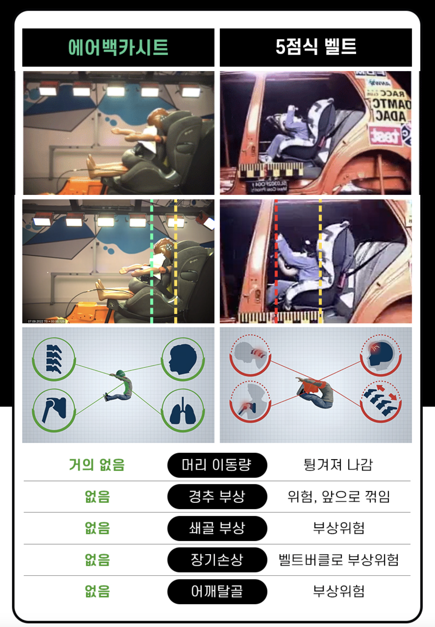 그리고, 새롭게 출시한 아노리스는 제로나(Sirona) 를 반대로 뒤집은 이름인 만큼, 후방보기가 안전하긴 하지만, 부모님과 아이에게 불편함을 주고, 기존 5점식 벨트의 위험성을 줄이기 위한 ‘전방보기’ 그것도 ‘에어백’ 이 들어간 전방보기로 아이가 안전하게 보호받는 한편, 편안한 다리 공간과 눈 맞춤을 제공해 더욱 특별하다.
