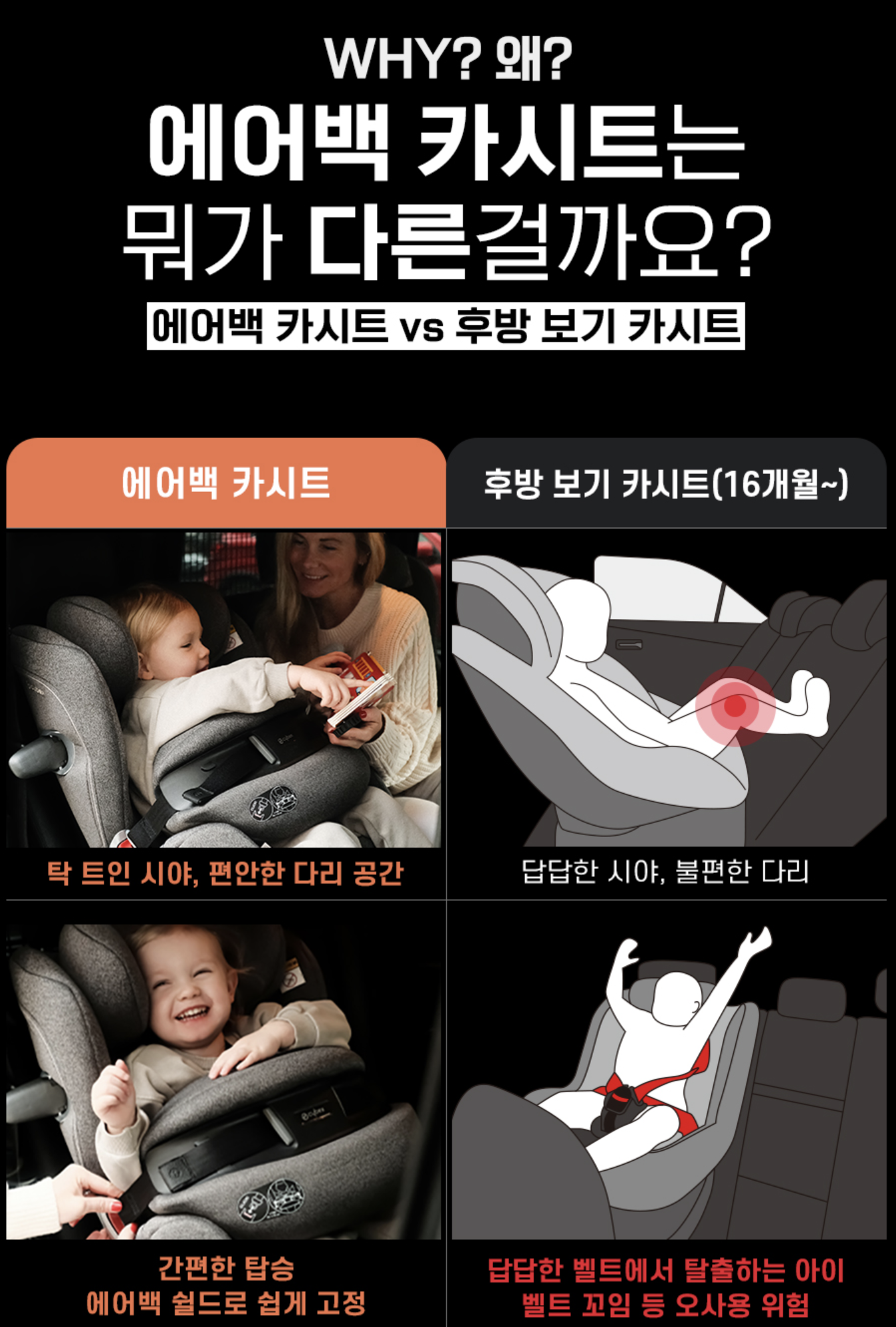 그리고 전방보기는 운전하는 입장에서 룸미러를 통해 아이의 모습을 확인하기에 정말 안성맞춤인데, 전방보기 카시트이면서도 에어백을 통해 안전까지 갖춰서 더할 나위 없이 아이와 부모 모두에게 최고의 카시트다.
