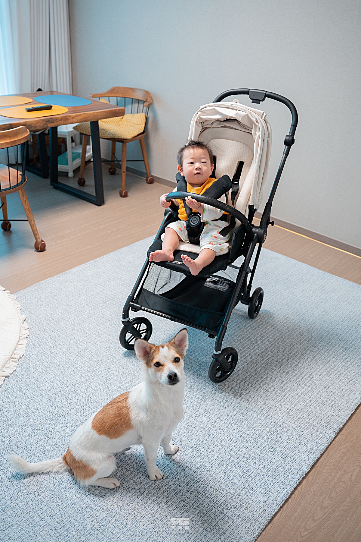 실제로 아이를 태워보니, 상당히 좋아하고 혼자서 잡고 놀기까지 할 정도로 마음에 들어한다. 정말 신기하게 싸이벡스 카시트를 태울 때에도 전에는 그렇게 찡찡거리더니, 이제는 카시트에서나 유모차에서나 기분좋게 잘 앉아있어서 외출하기가 더욱 수월해졌다.