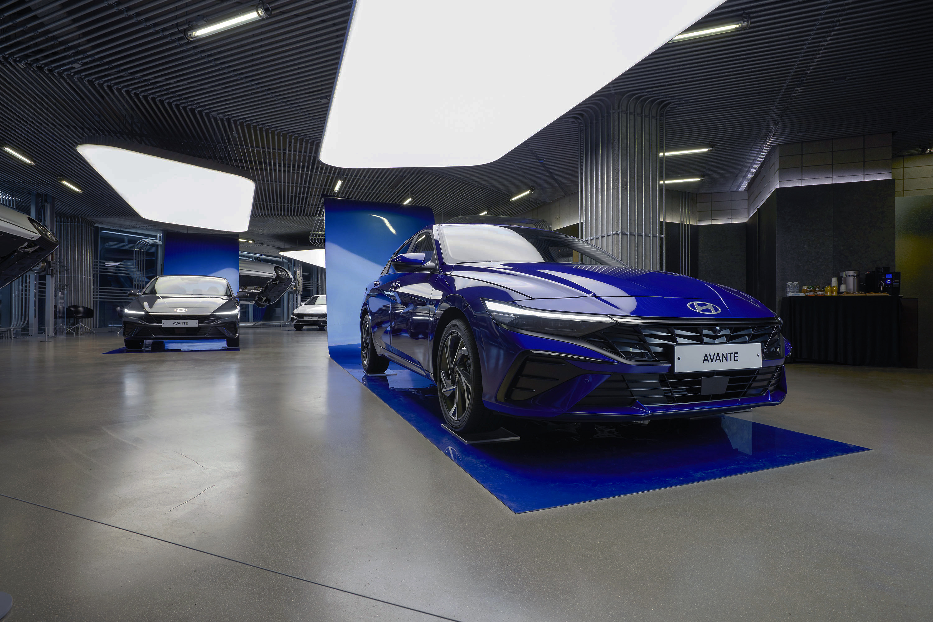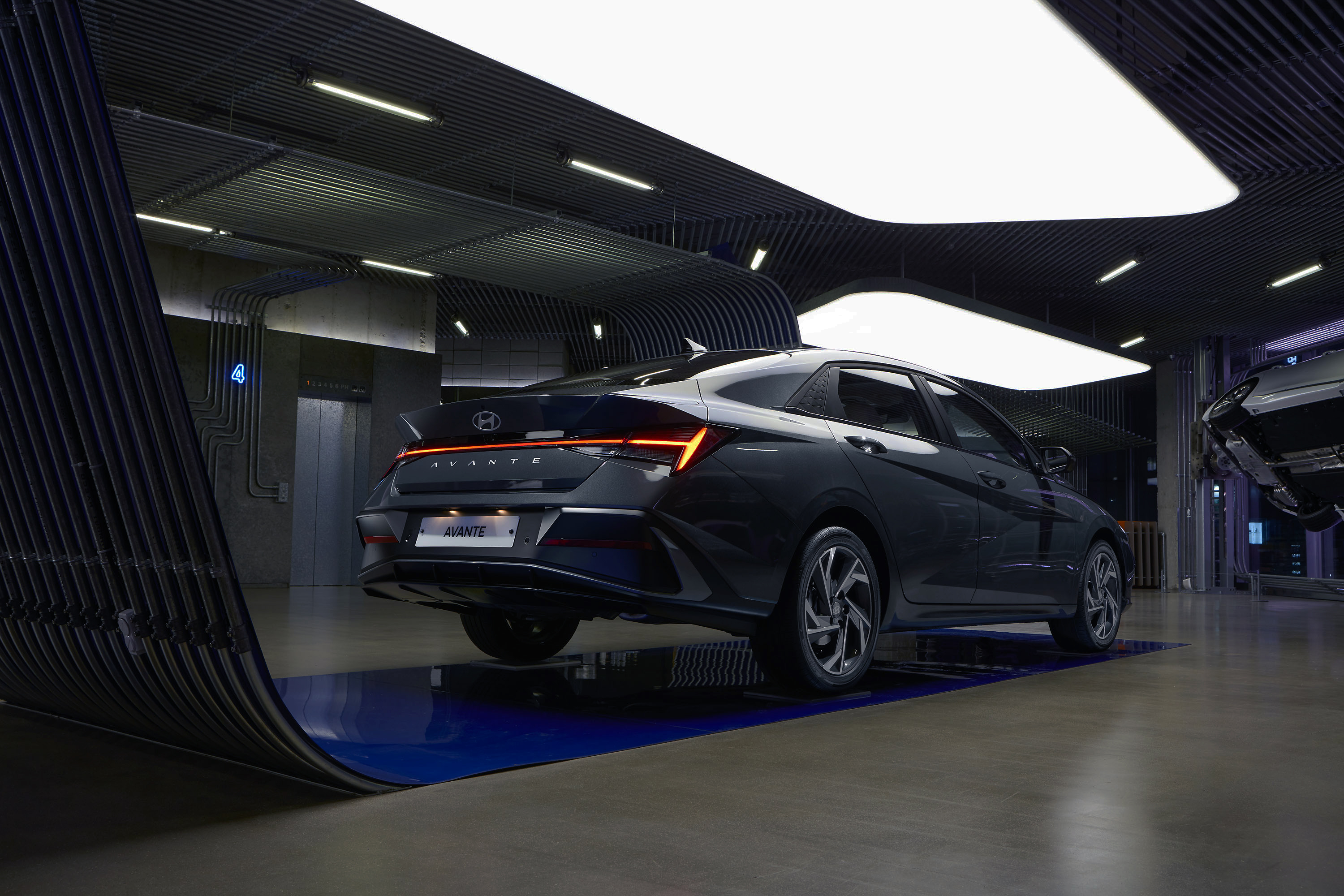아반떼 부분변경 모델인 ‘더 뉴 아반떼’ 는 프론트 그릴에서부터 강렬한 존재감을 보여준다. 파라메트릭 다이나믹스(Parametric Dynamics) 테마를 강조하면서 수평적인 그래픽 요소를 확장해 더 낮고 와이드한 비율로 아반떼를 강렬하게 변신시키며, 압도적인 존재감의 디자인을 보여준다.