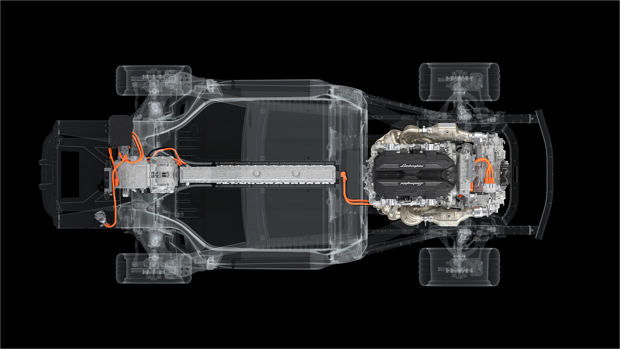 람보르기니는 1963년에 출시된 350GT에서 V12엔진을 최초로 사용한 이후 V12 엔진의 대명사로 자리매김해왔다. 2019년 시안(Sian)을 선보이면서 12기통 내연기관에 전기모터를 결합시키는 첫 시도를 했다. 당시 시안에 장착된 25kW 전기모터를 활용해 슈퍼 캐퍼시터에 전기 에너지를 저장하는 방식으로 V12 엔진을 보조하는 역할을 담당했다. 반면 LB744는 전례가 없는 하이브리드 아키텍처와 새로운 V12 엔진을 통해 HPEV(High Performance Electrified Vehicle)라는 새로운 장르를 선보인다. 플러그인 하이브리드 슈퍼스포츠카이면서, 무게가 가벼운 고성능 리튬이온 배터리를 섀시 중앙부에 위치한 트랜스미션 터널 내에 위치시켰다. 이 같은 혁신적인 설계 덕분에 배출가스는 줄이면서 성능은 극대화할 수 있다.