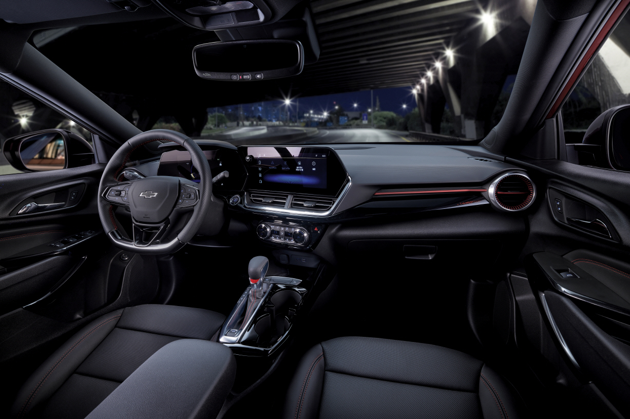 트랙스 크로스오버의 인테리어는 쉐보레의 차세대 디자인 언어를 통해 운전자 중심으로 디자인됐다. 전면 디스플레이는 플로팅 타입으로 8인치 컬러 클러스터와 11인치 컬러 터치스크린으로 구성된 듀얼 스크린이 탑재됐다. 중앙 터치스크린은 운전자를 향해 약 9도 기울어져 있어 보다 편리한 인터페이스를 제공하며 주행 정보와 엔터테인먼트 등 다양한 기능을 지원한다.